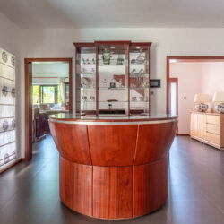 Le salon propose un volume agréable et intègre un espace bar, créant une atmosphère conviviale et structurée. Les pièces de vie s’ouvrent sur une terrasse couverte, permettant de profiter de l’extérieur tout au long de l’année.