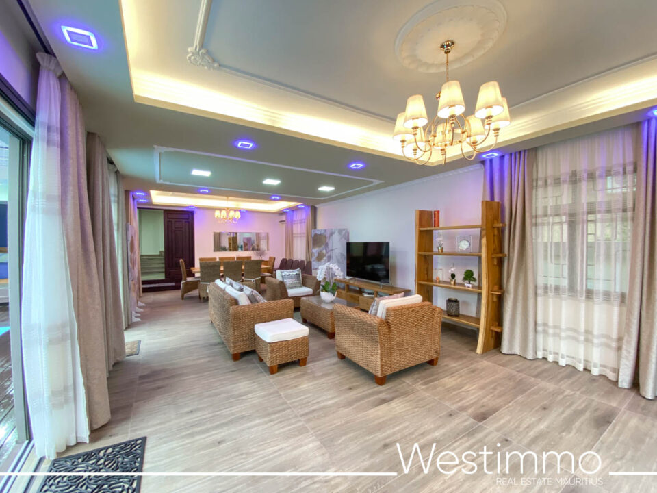 Westimmo, agence immobilière de référence à l’île Maurice, a le privilège de vous présenter en exclusivité cette élégante villa contemporaine, nichée dans un environnement paisible et recherché, à proximité immédiate des commodités.