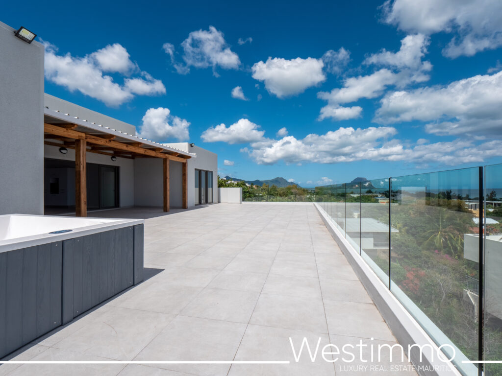 Westimmo presents this beautiful 3 bedroom duplex penthouse with a relaxing Jacuzzi and breathtaking ocean views in Tamarin, now available for sale.