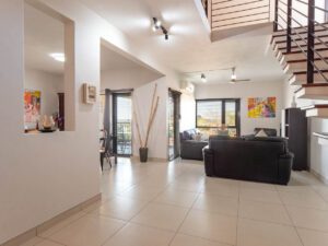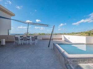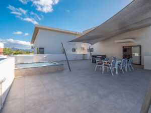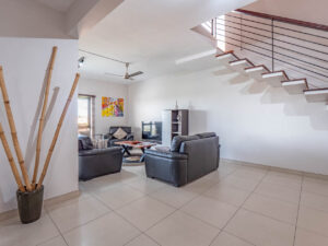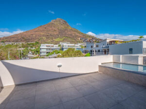 Duplex penthouse for long-term rent in Tamarin. Secure residence, private jacuzzi, 100 m² terrace, sea and mountain views. Luxury, comfort and serenity.