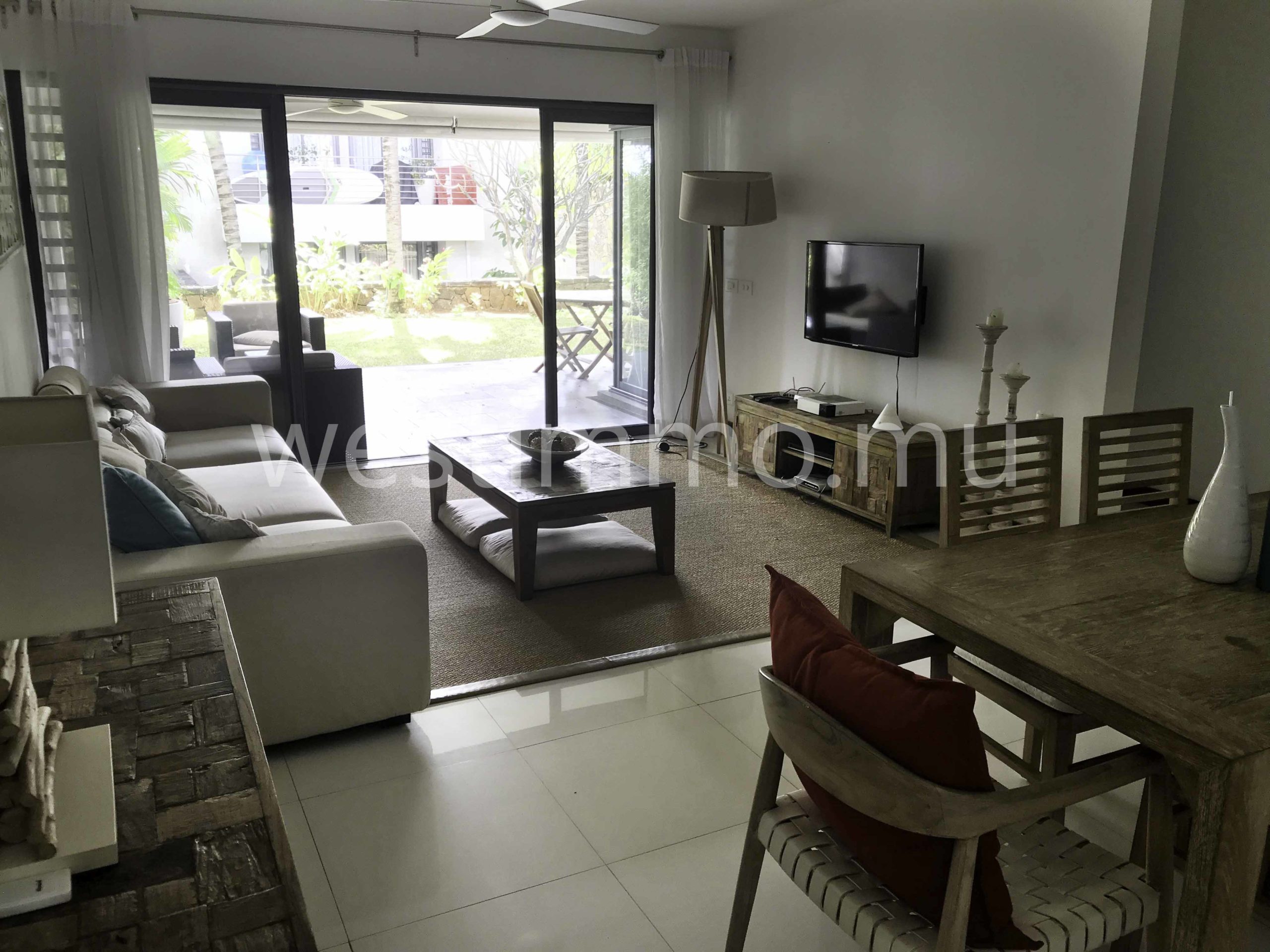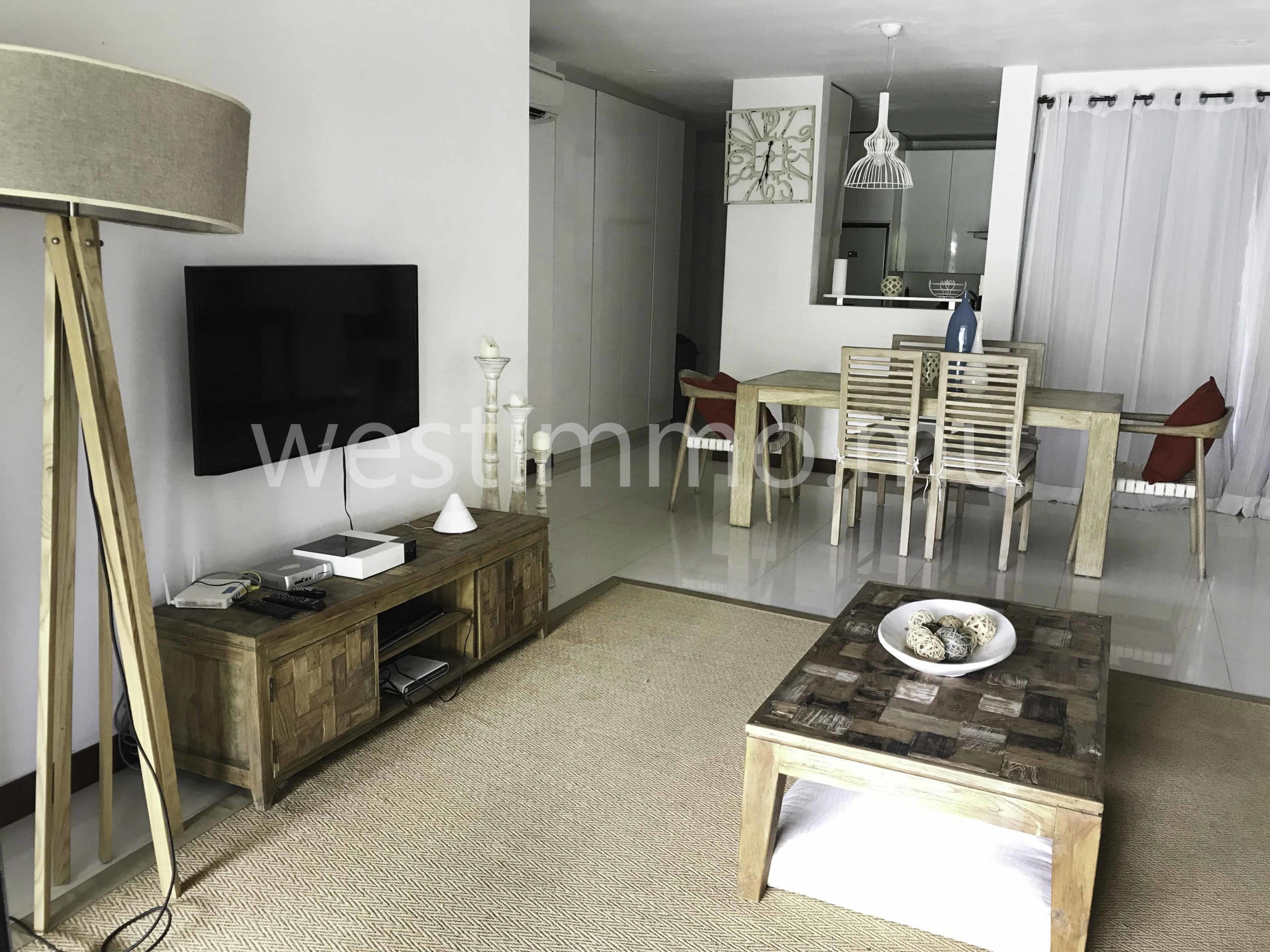 We invite you to visit this charming flat, with 3 bedrooms and a shared swimming pool, you are proposed for long term rental in a secure residence on the sea front. The apartment is located on the ground floor of a residence with a communal swimming pool and consists of: - varangue - lounge-stay - fully equipped kitchen - 1 master bedroom in air-conditioned - 2 air-conditioned rooms - 1 bathroom - Wc - Laundry/store - Garden