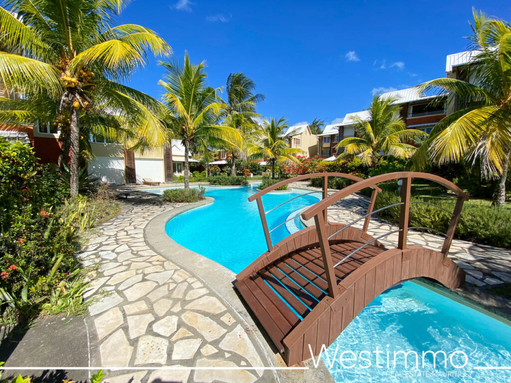TAMARIN – 40 000Rs – Appartement lumineux de 2 chambres avec un petit jardin privatif à louer dans une résidence sécurisée avec piscine proche de toutes commodités et de la plage