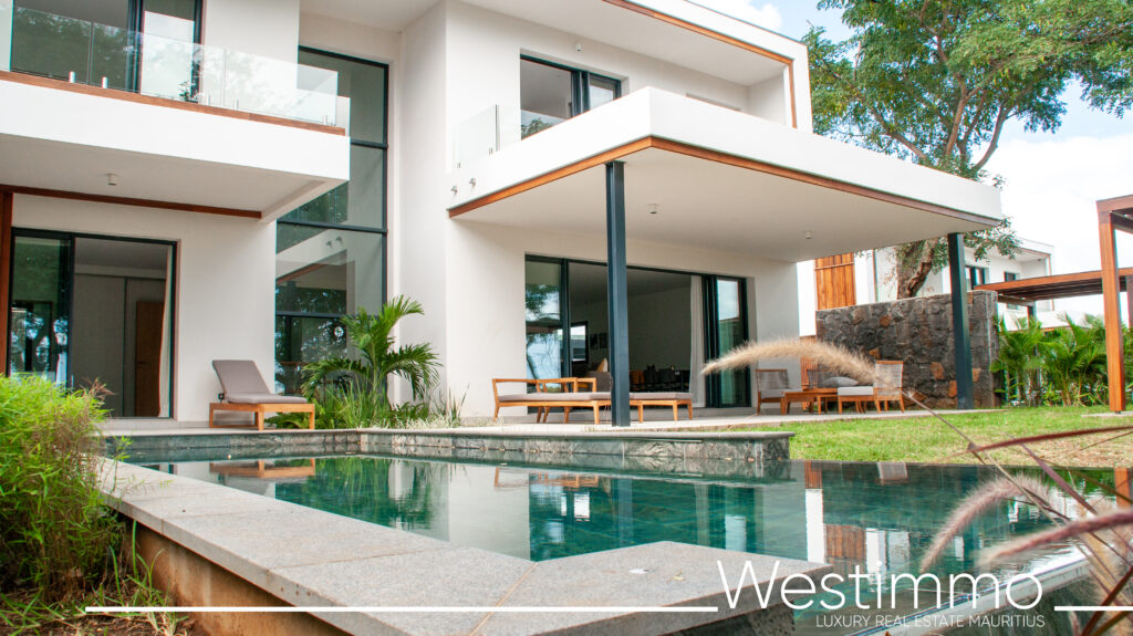 TAMARIN – 150 000 Rs – Somptueuse villa de 350 m2 avec 4 chambres, piscine et une vue mer en location long terme dans une résidence hautement sécurisée.