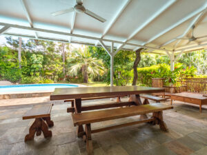 belle villa de plain-pied de 4 chambres, dont une ensuite, avec vaste espace de vie ouvert sur la terrasse, le jardin arboré et la piscine. Coin TV/bureau, grande terrasse aménagée avec salle à manger et salon, petit lounge extérieur près de la piscine et grand store. Idéalement située dans un quartier résidentiel calme, proche des commerces, écoles et marina.