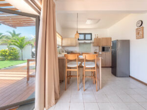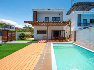 Maison meublée de 3 chambres à louer à Flic en Flac, avec piscine privée, jardin, terrasse et toit-terrasse. Située dans un quartier résidentiel à 10 minutes à pied de la plage. Location long terme avec Westimmo.