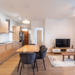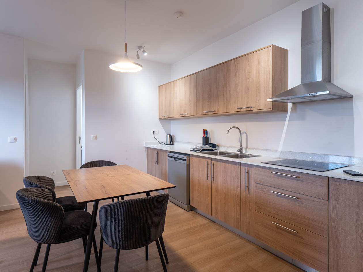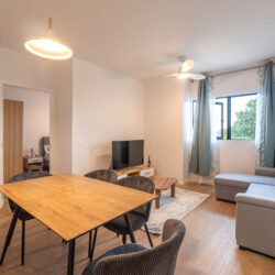L’appartement, d’une surface de 62 m², est entièrement meublé avec soin dans un esprit cozy et fonctionnel. Il se compose d’une cuisine moderne ouverte, d’un salon convivial, de deux chambres confortables et d’une salle de bain bien agencée. L’ensemble est neuf, lumineux et prêt à être occupé immédiatement.