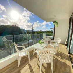 Situé au premier étage d’une villa idéalement implantée au calme à Péreybère, ce bel appartement neuf entièrement meublée de 90 m² offre un cadre de vie moderne, confortable et sécurisé, à proximité des commodités et des plages.