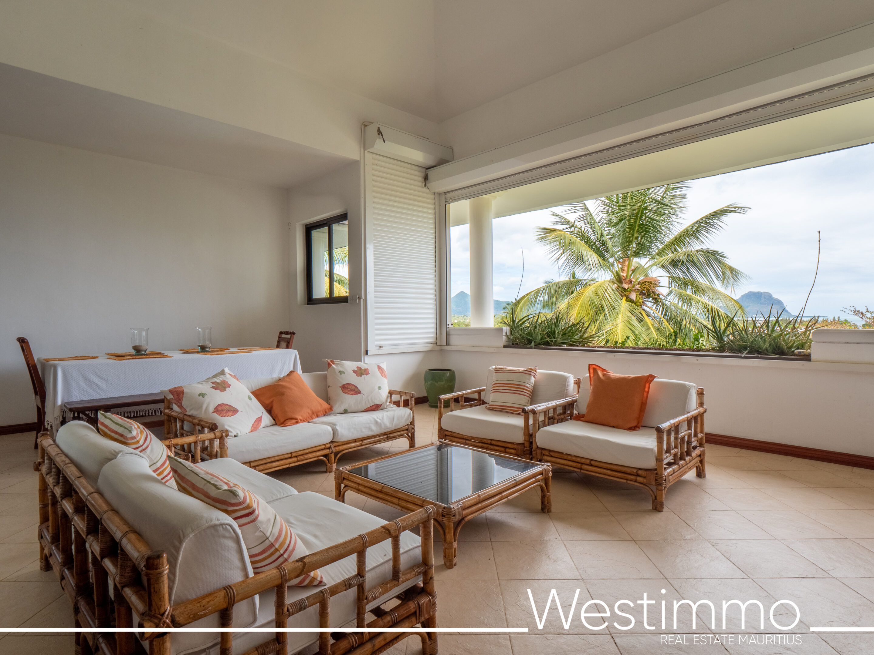 L'appartement offre une vue sur l'océan Indien scintillant, ainsi que sur la silhouette majestueuse de la montagne du Morne, inscrite au patrimoine mondial de l'UNESCO. Chaque jour, vous pourrez vous émerveiller devant ce panorama naturel exceptionnel depuis votre propre terrasse.