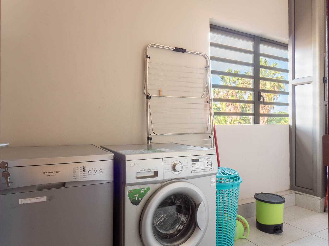 Un coin buanderie et un store complètent les équipements. L’appartement inclut également un parking privé. La résidence est sécurisée pour votre tranquillité.