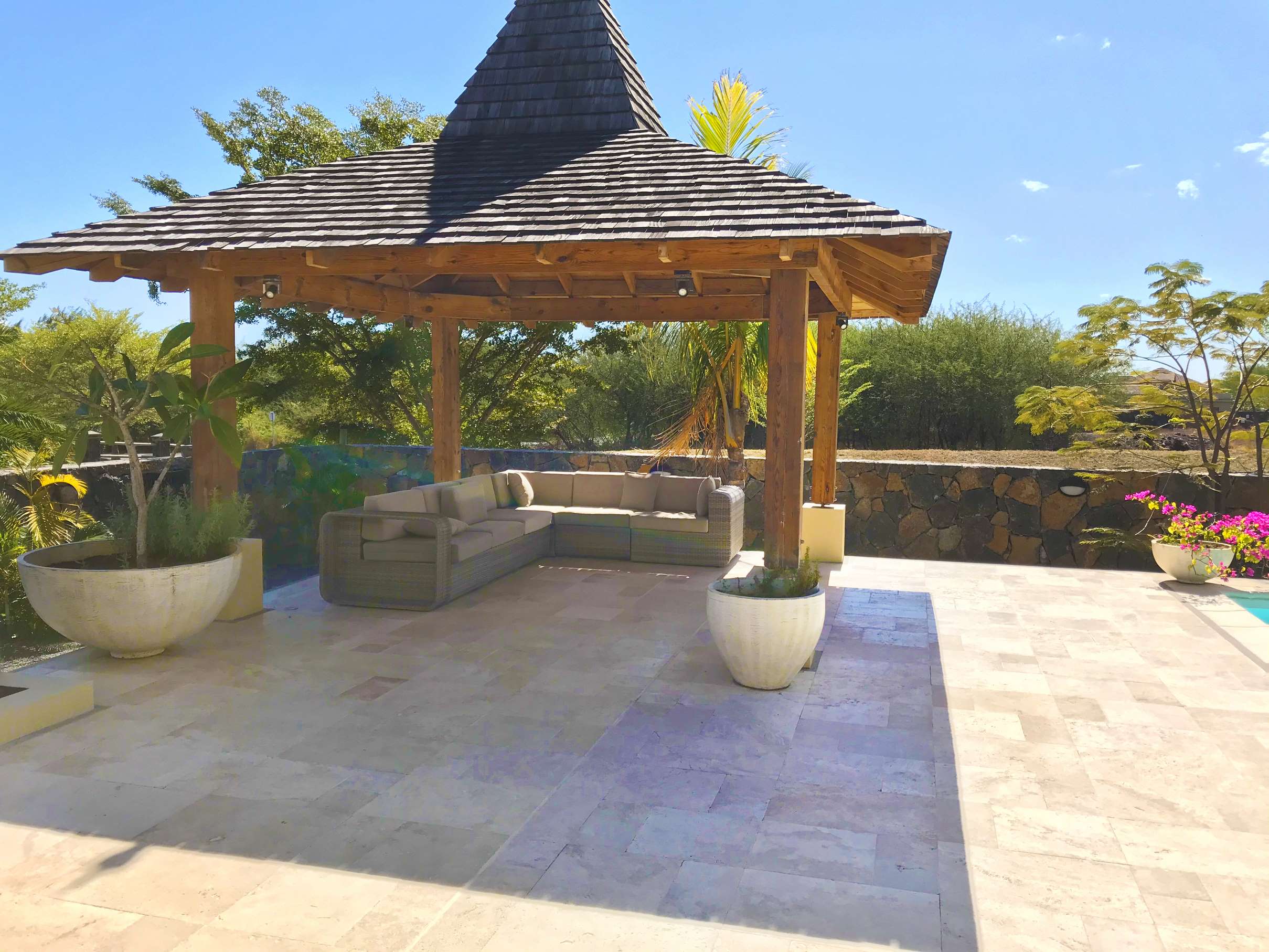 Vous profiterez d'un villa moderne et meublé dans un quartier très calme et résidentiel. Elle a une superficie de 250 m2 habitable et 800m2 de terrain. Salon/séjour/salle à manger/cuisine Grande varangue avec cuisine extérieure 1 grande master avec douche intérieur et extérieur 2 chambres en suite 1 cave à vin 1 garage 2 voitures EXTERIEUR : varangue Piscine Kiosque Très belle villa familiale, elle est faite pour une vie extérieure et recevoir les amis et la famille.