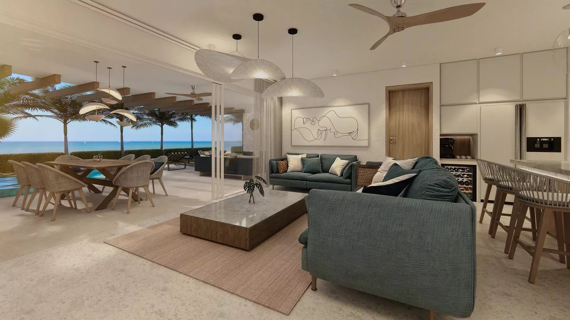 Chaque pièce a été conçue pour maximiser l’espace et la luminosité, avec de vastes ouvertures qui baignent l’intérieur d’une lumière apaisante. Depuis la terrasse, profitez d’une vue panoramique où la mer se fond à l’horizon, créant un cadre de vie serein et inspirant. L’agencement intelligent de l’appartement favorise une circulation fluide entre les espaces, parfaite pour recevoir famille et amis dans un environnement chaleureux.