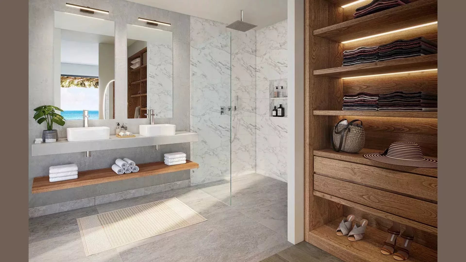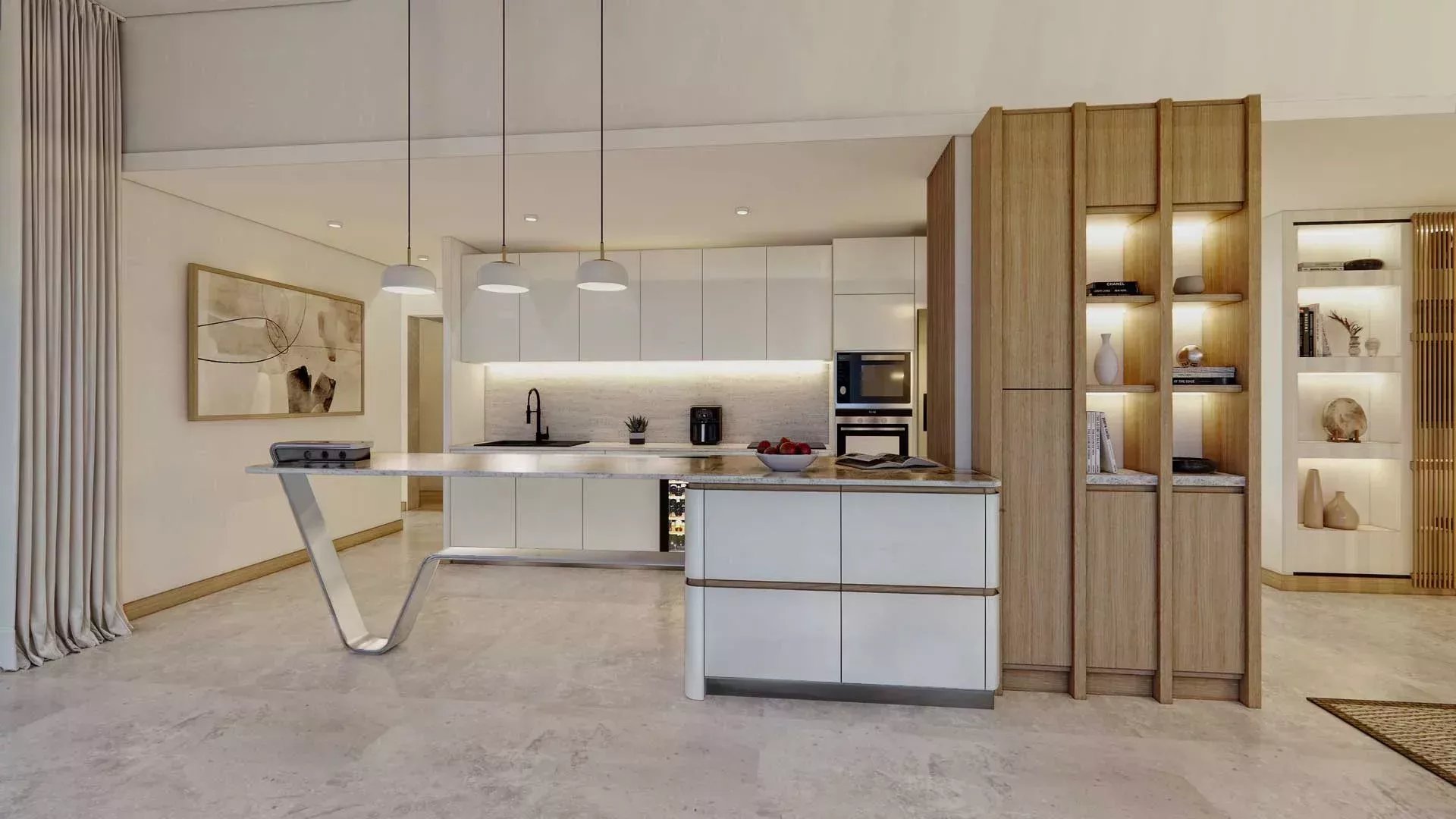 Au centre de ce penthouse, la cuisine ouverte se transforme en un espace convivial et lumineux, parfait pour les repas en famille ou les soirées entre amis. Avec ses appareils de haute qualité et ses finitions élégantes, cette cuisine allie fonctionnalité moderne et vue imprenable sur l’océan Indien. Cuisinez tout en profitant d’un panorama exceptionnel, un privilège réservé aux résidents de ce penthouse.