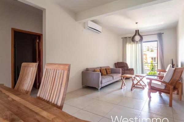 Joli appartement de 2 chambres avec son design moderne est en location long terme à Flic en Flac dans une résidence sécurisée avec piscine commune et proche de la plage.