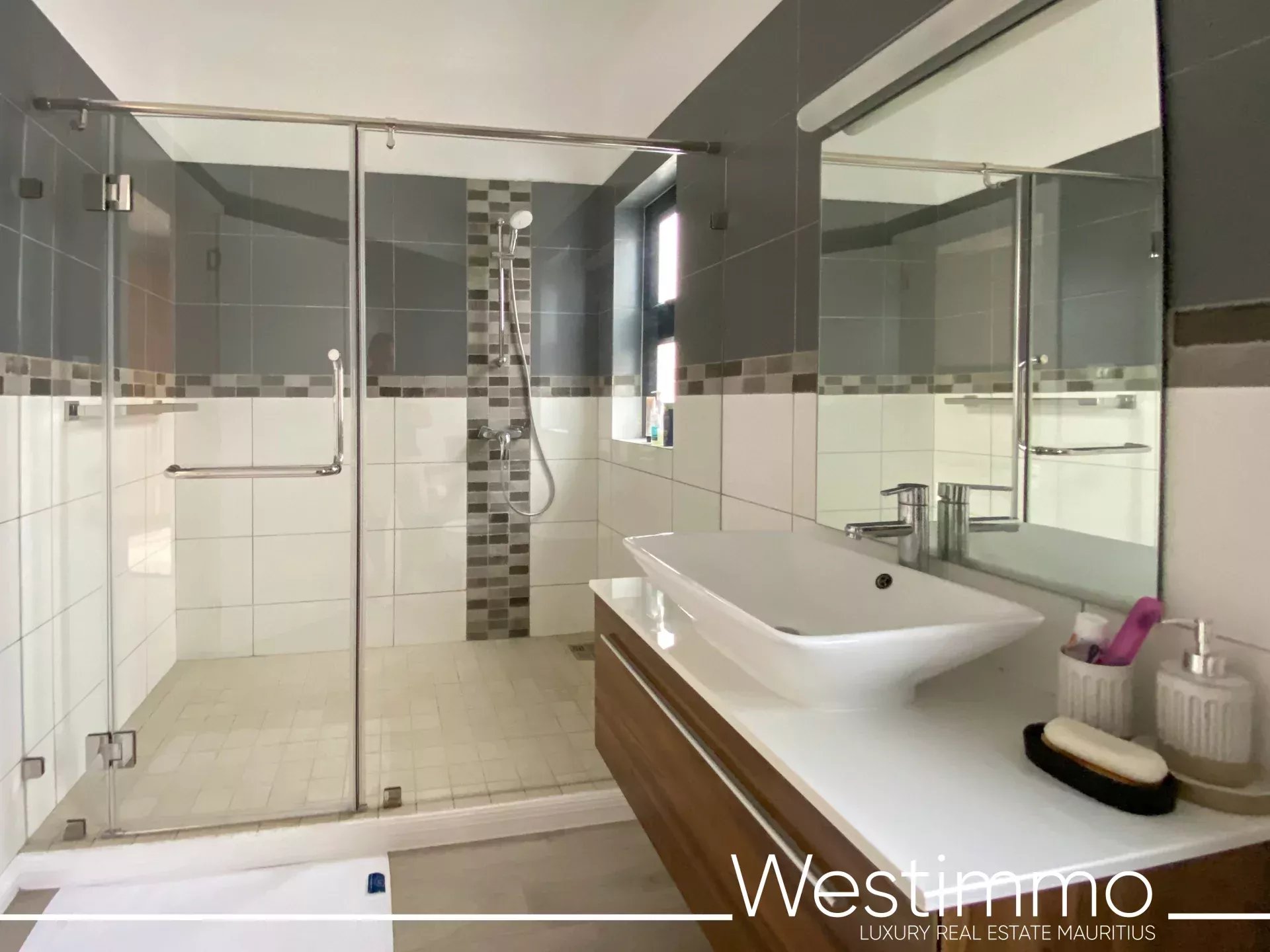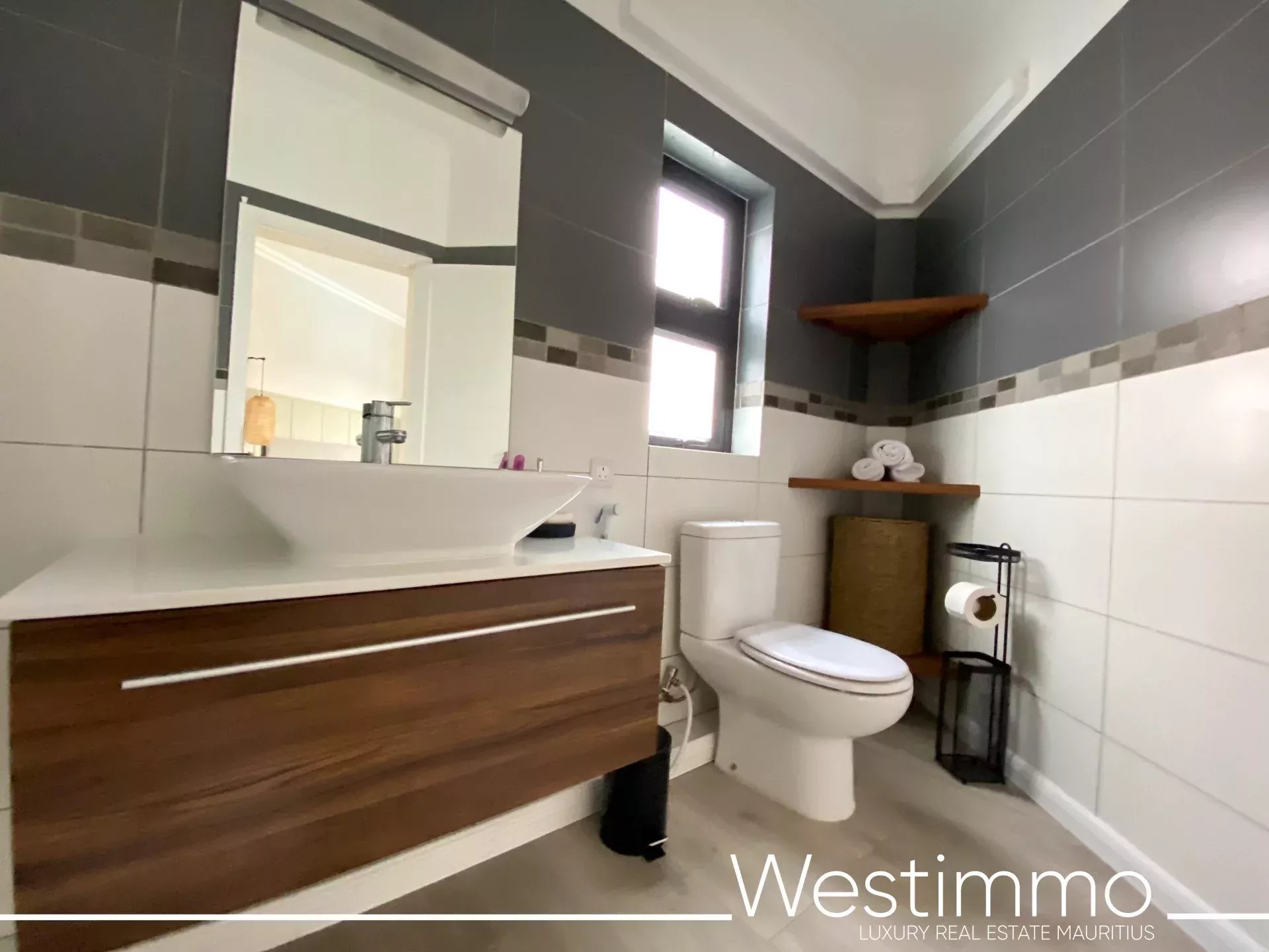 Flic en Flac – Luxueux appartement pieds dans l'eau avec piscine et vue sur le lagon.