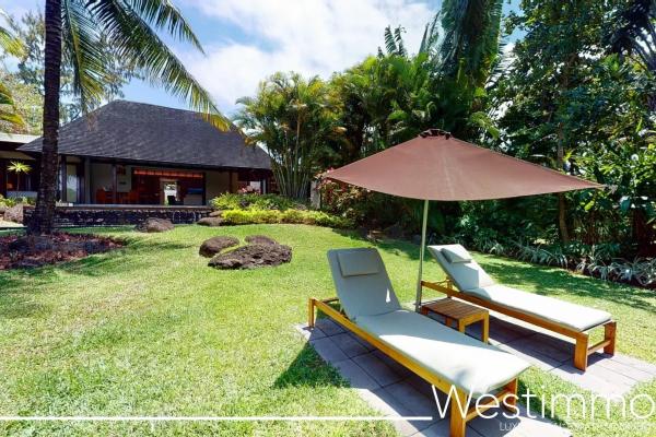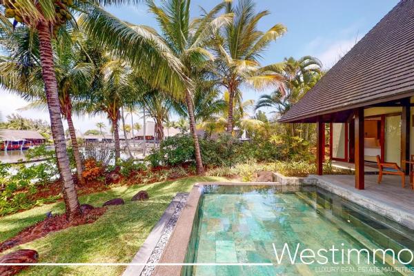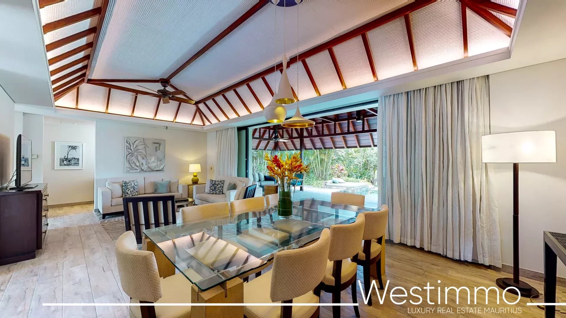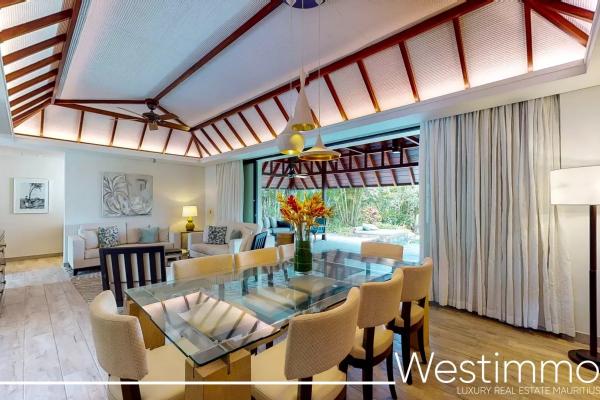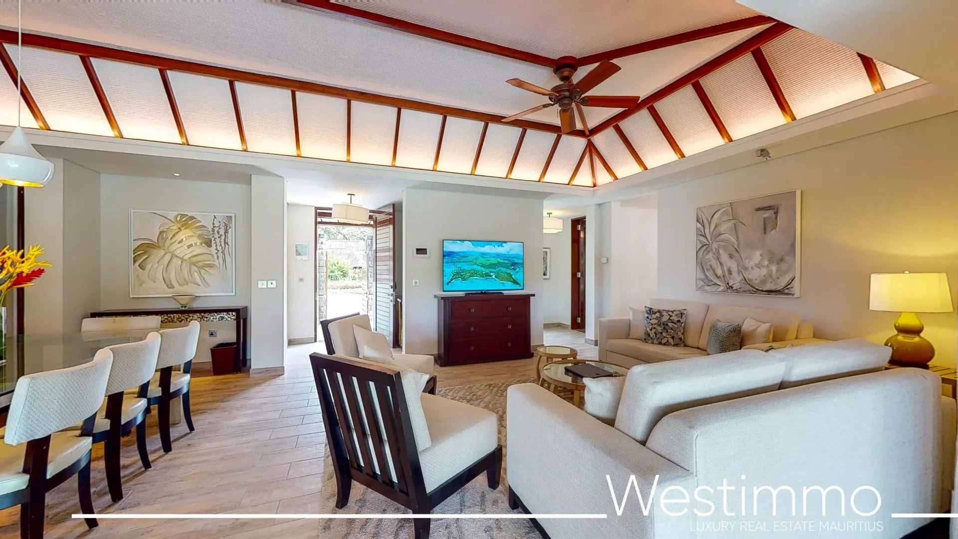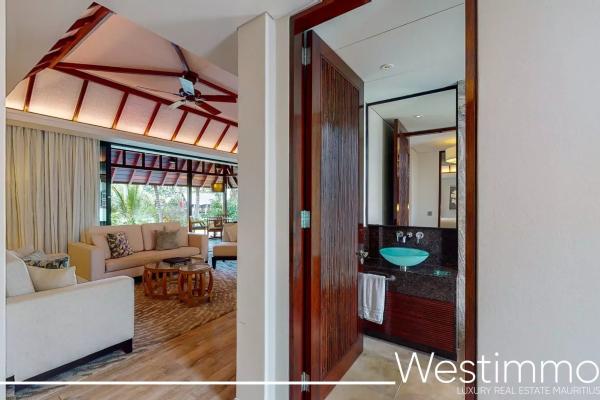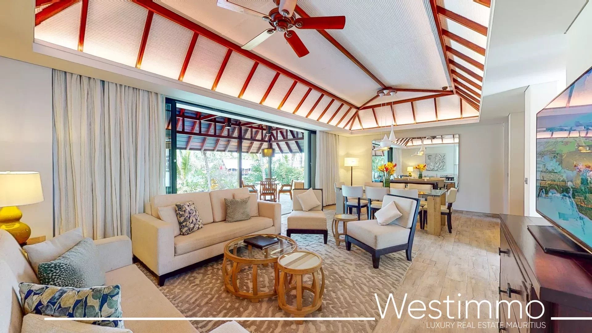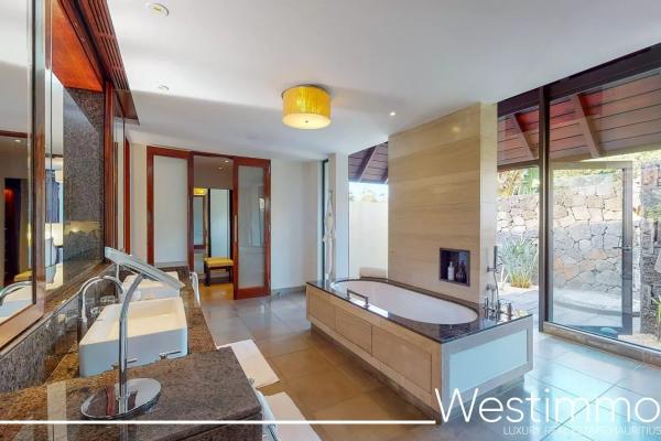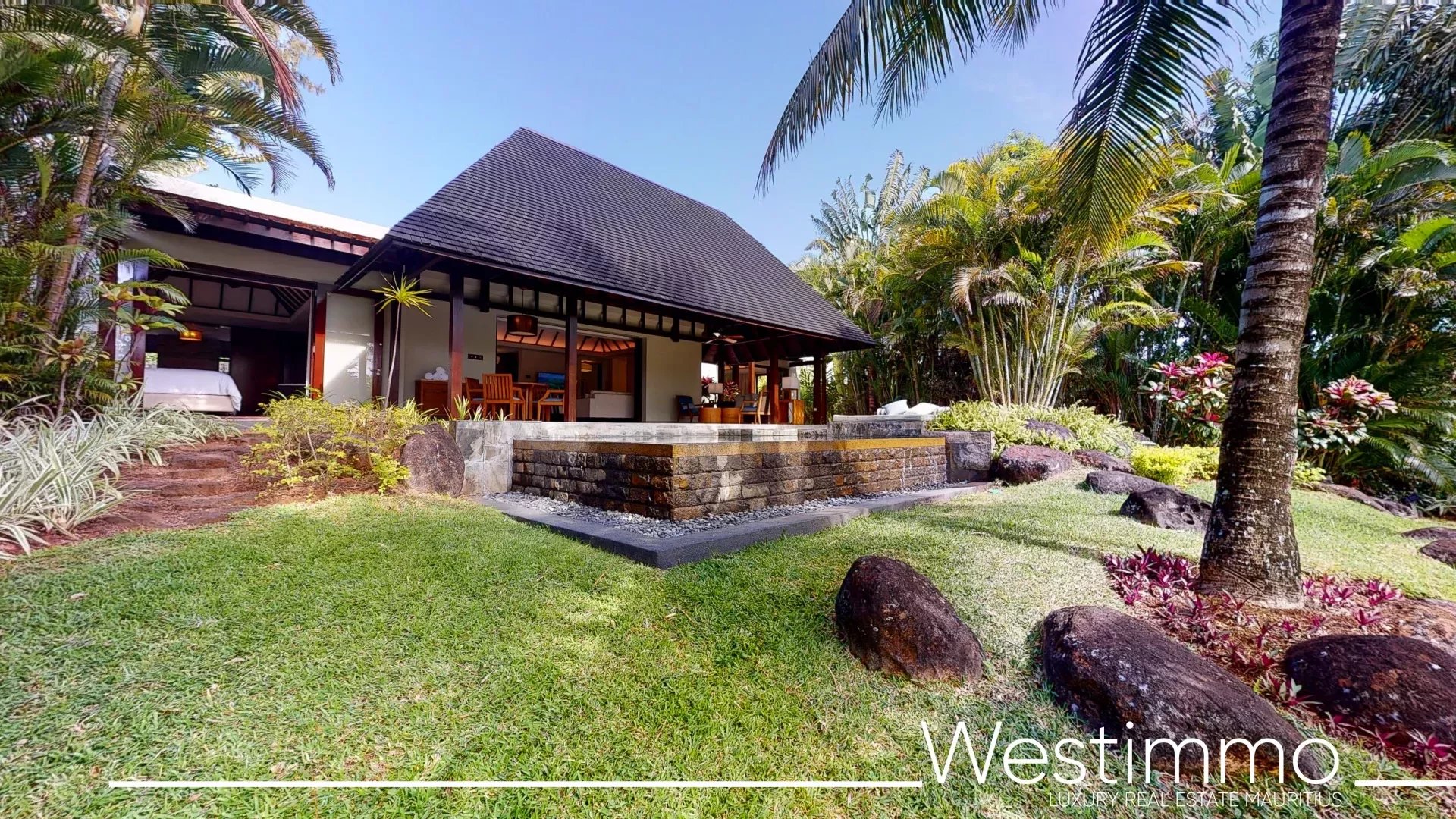Offrez-vous un coin de paradis avec cette somptueuse villa suite d’un hôtel 5 étoiles de plain-pied de 223 m², nichée au cœur d’un prestigieux domaine. Entièrement rénovée avec goût, cette propriété conjugue élégance tropicale et confort moderne.