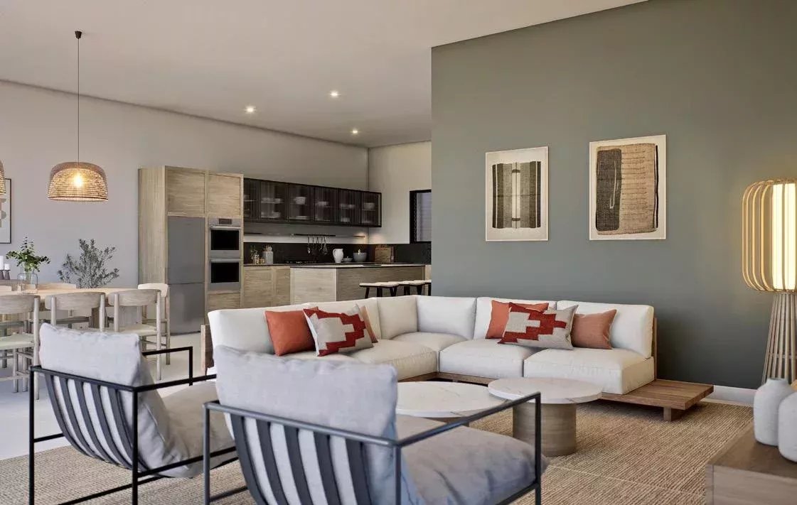 L’architecture met en avant des lignes épurées, des perspectives ouvertes et une belle luminosité naturelle grâce à de grandes baies vitrées qui prolongent les espaces de vie vers l’extérieur. Chaque appartement a été conçu pour valoriser la sensation d’espace, avec une circulation fluide entre le salon, la salle à manger et la cuisine équipée d’appareils haut de gamme. L’ensemble dégage une atmosphère résolument contemporaine, à la fois chaleureuse et raffinée, parfaitement adaptée à un mode de vie tourné vers le confort et la qualité. Les finitions soignées et l’organisation des volumes participent à l’équilibre général du projet, dans une approche à la fois esthétique et durable.
