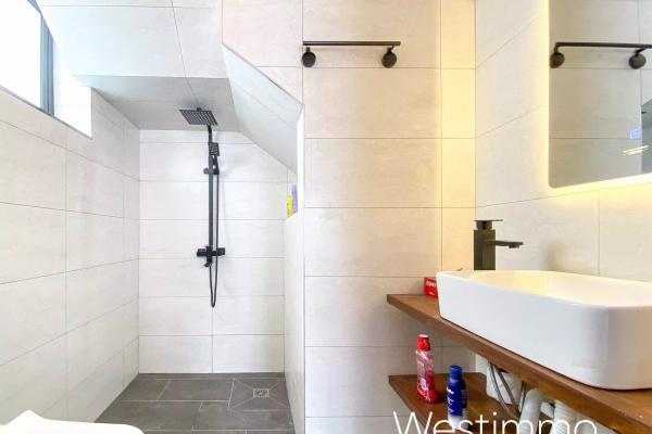 Cette smart house dispose également d’un rooftop aménageable, d’un portail automatique piloté par smartphone, d’une alarme, d’une clôture électrique et de caméras. Un parking intérieur couvert ainsi qu’une piscine au sel de 7 x 3,5 m complètent l’ensemble. Les animaux sont tolérés en extérieur, ce qui renforce encore l’agrément de vie pour une famille.
