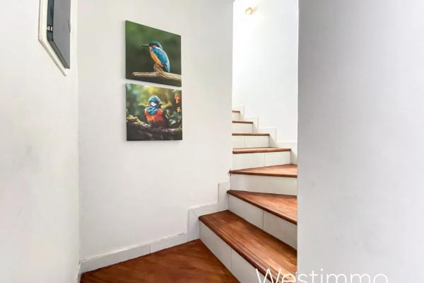 Le rez-de-chaussée accueille une cuisine ouverte entièrement équipée, un salon, une salle à manger, un toilette invité ainsi qu’une chambre en suite climatisée avec accès extérieur. L’étage comprend deux chambres climatisées avec vue sur la verdure, dont une avec terrasse et une avec balcon, ainsi qu’une salle de bain avec w.c. Deux terrasses supplémentaires permettent de profiter pleinement du cadre paisible et végétalisé.