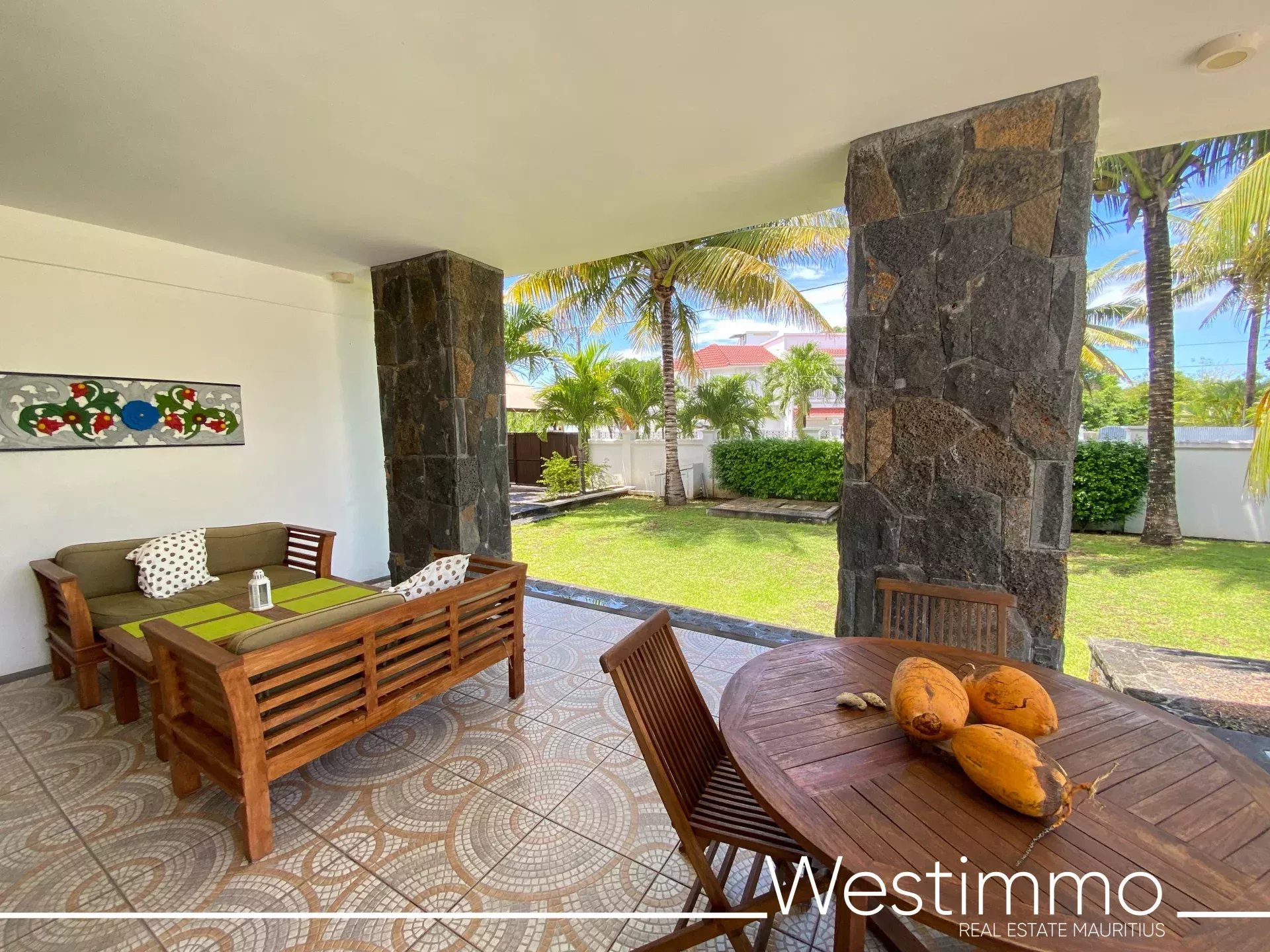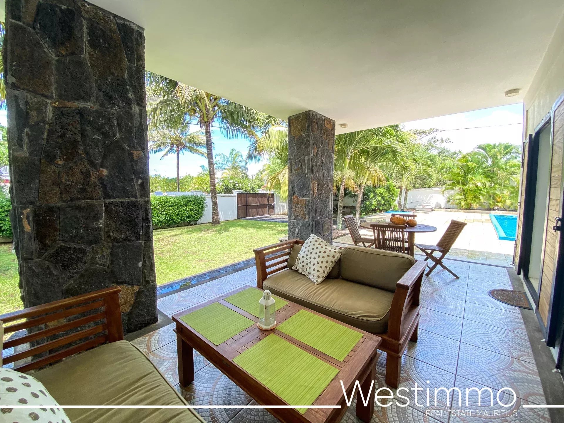 -Terrasse couverte aménagée idéale pour prendre ses repas ou pour se détendre et profiter du climat tropical de l’île