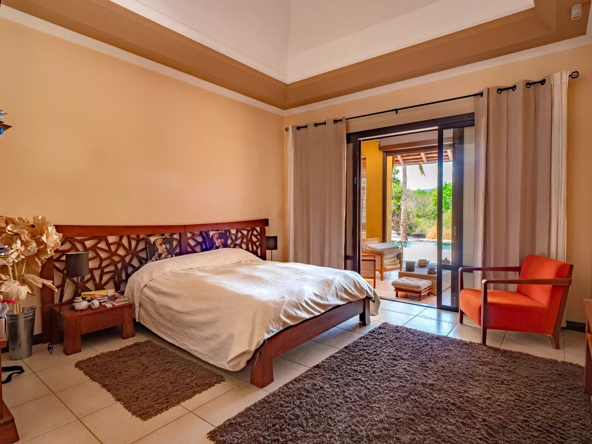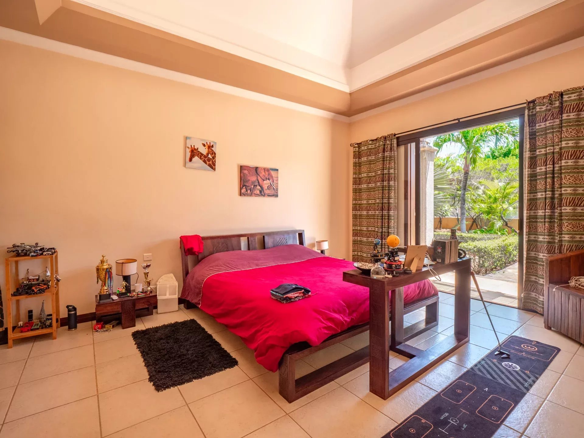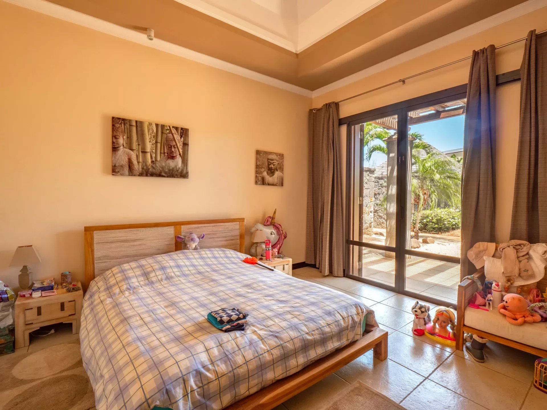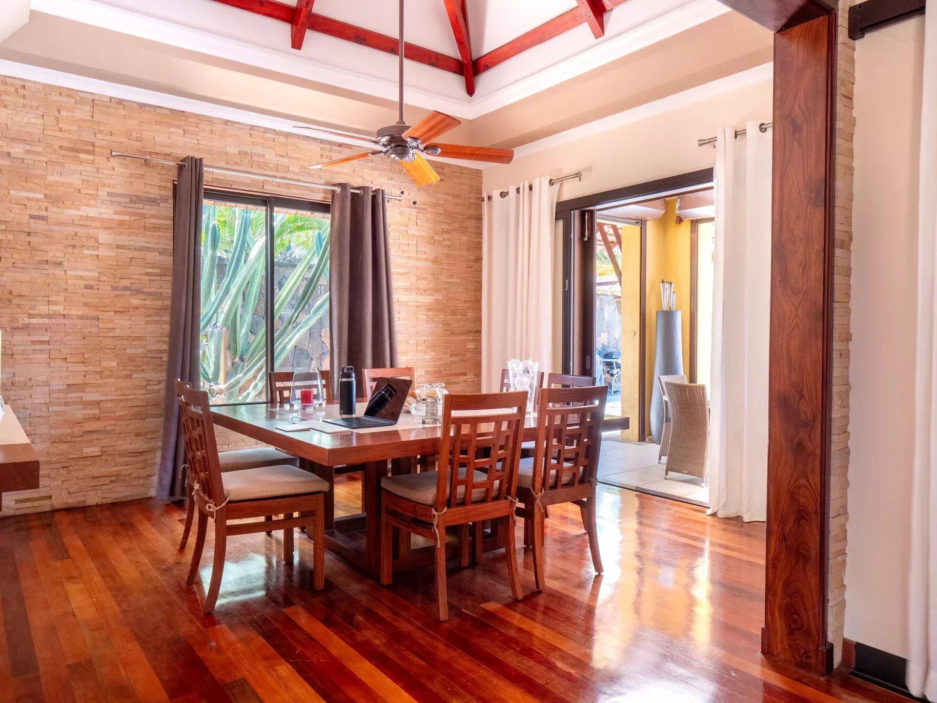 Les six chambres, toutes équipées de climatisation intégrée et de moustiquaires, offrent un niveau de confort élevé en toute saison. Chaque suite a été conçue pour préserver l’intimité de ses occupants, avec des salles de bains attenantes et des finitions soignées qui prolongent l’élégance générale de la villa. Les prestations techniques viennent compléter l’ensemble avec cohérence, notamment grâce à la présence d’un groupe électrogène, d’un portail électrique, d’un système de vidéo surveillance, de la fibre optique, d’un accès internet haut débit, d’un gardien et d’un service de sécurité discret. Cette villa réunit ainsi tous les éléments attendus d’une propriété de très haut standing dans l’un des secteurs les plus convoités de Tamarin.