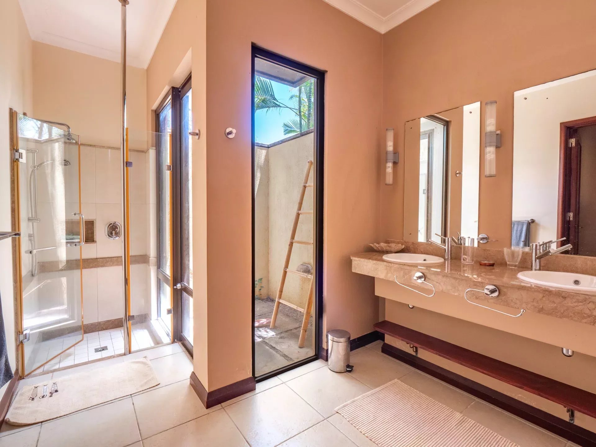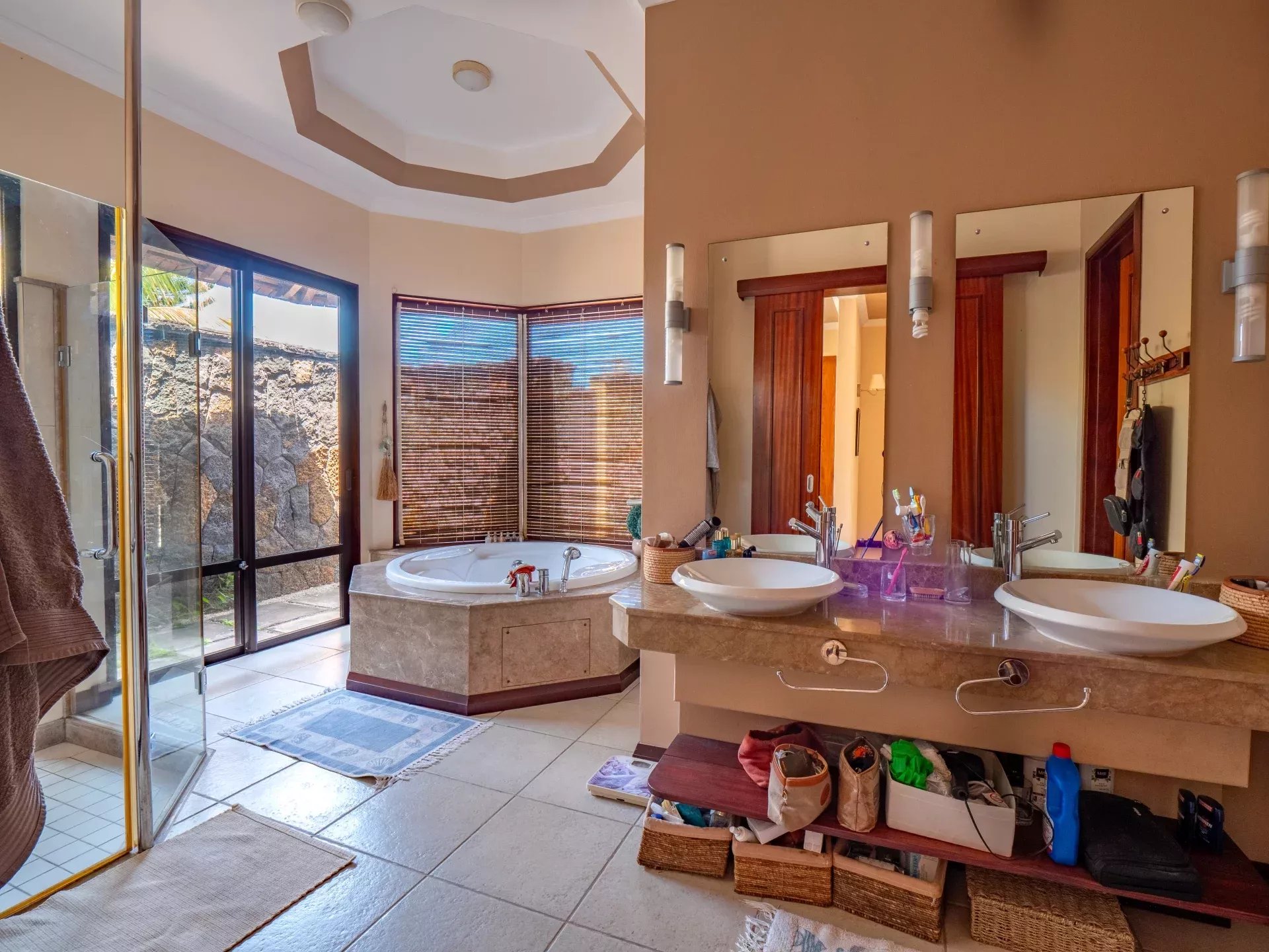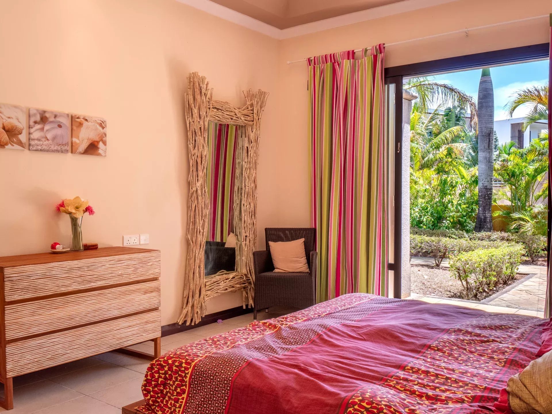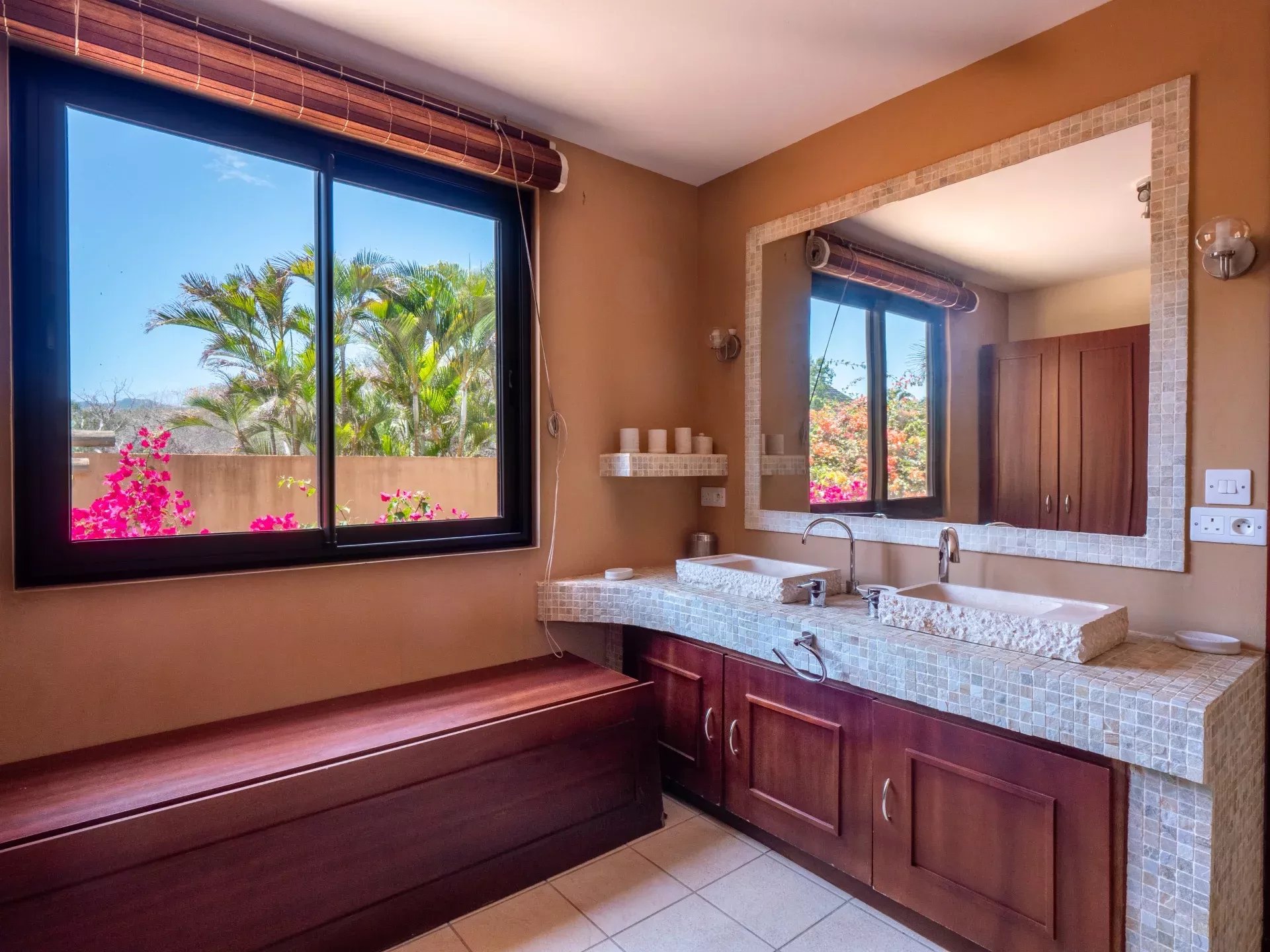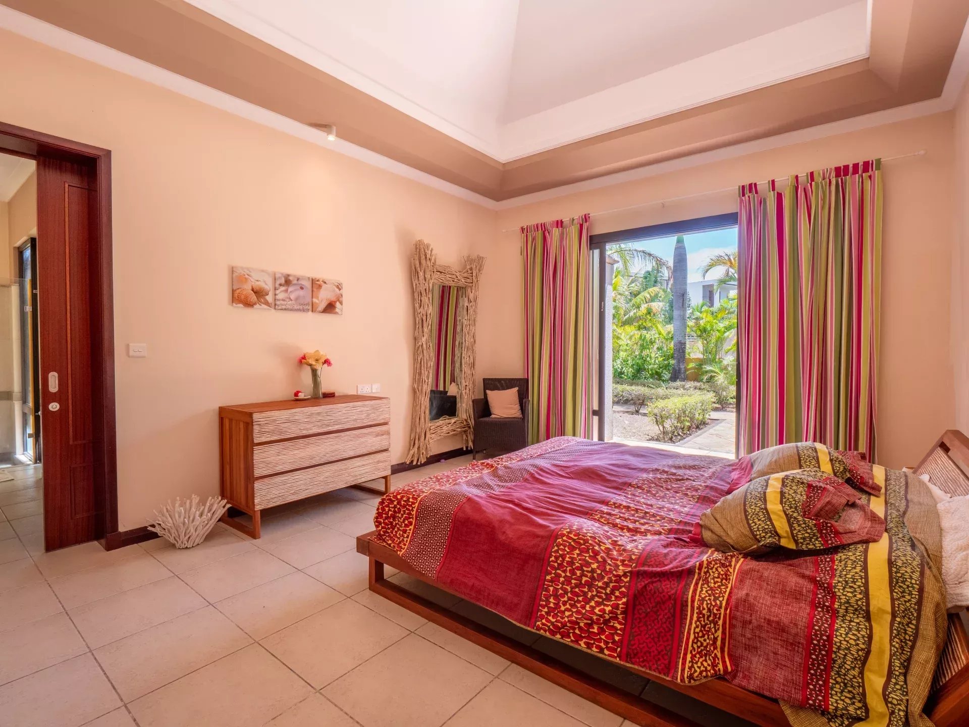 Les six chambres, toutes équipées de climatisation intégrée et de moustiquaires, offrent un niveau de confort élevé en toute saison. Chaque suite a été conçue pour préserver l’intimité de ses occupants, avec des salles de bains attenantes et des finitions soignées qui prolongent l’élégance générale de la villa. Les prestations techniques viennent compléter l’ensemble avec cohérence, notamment grâce à la présence d’un groupe électrogène, d’un portail électrique, d’un système de vidéo surveillance, de la fibre optique, d’un accès internet haut débit, d’un gardien et d’un service de sécurité discret. Cette villa réunit ainsi tous les éléments attendus d’une propriété de très haut standing dans l’un des secteurs les plus convoités de Tamarin.