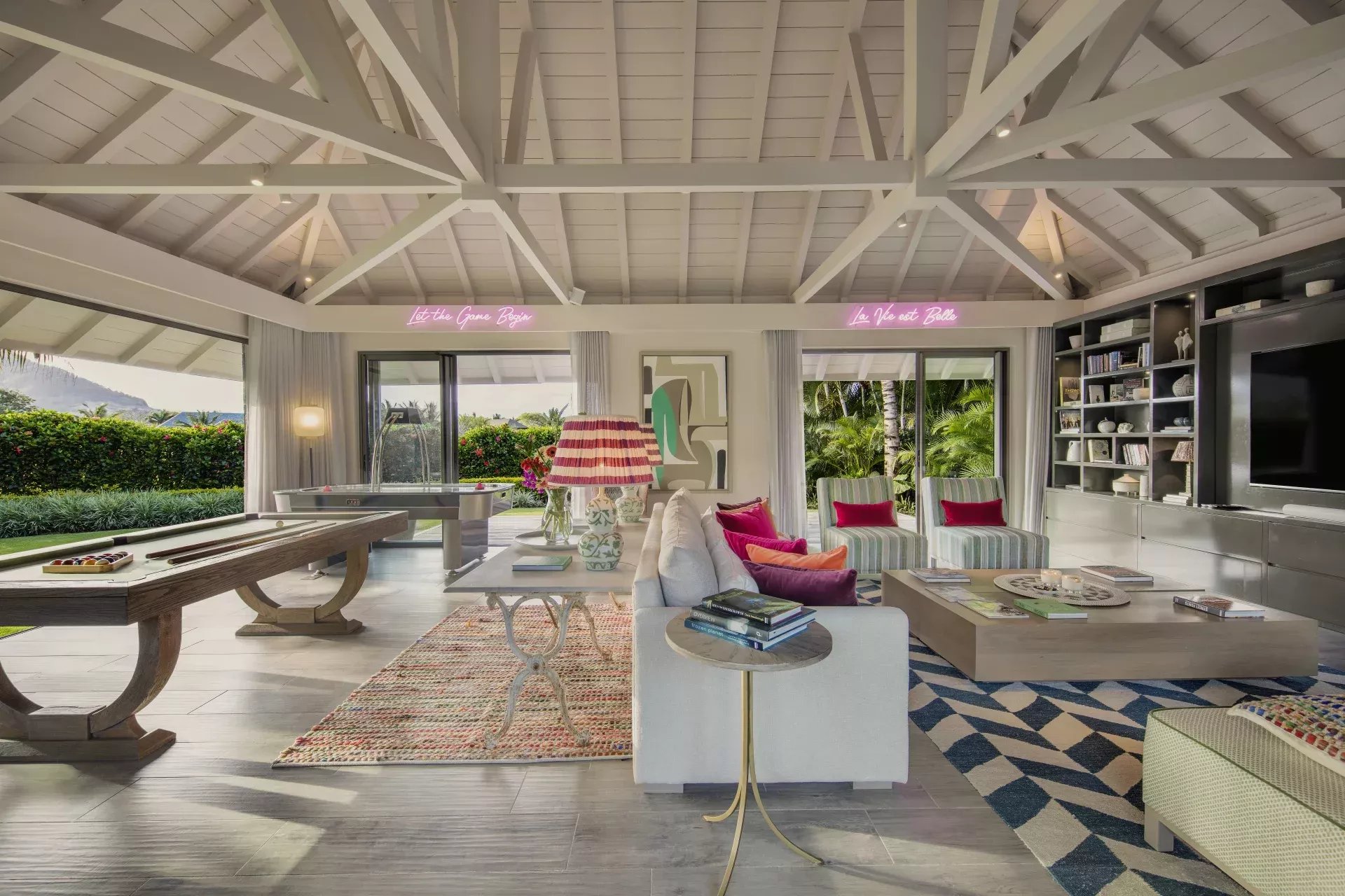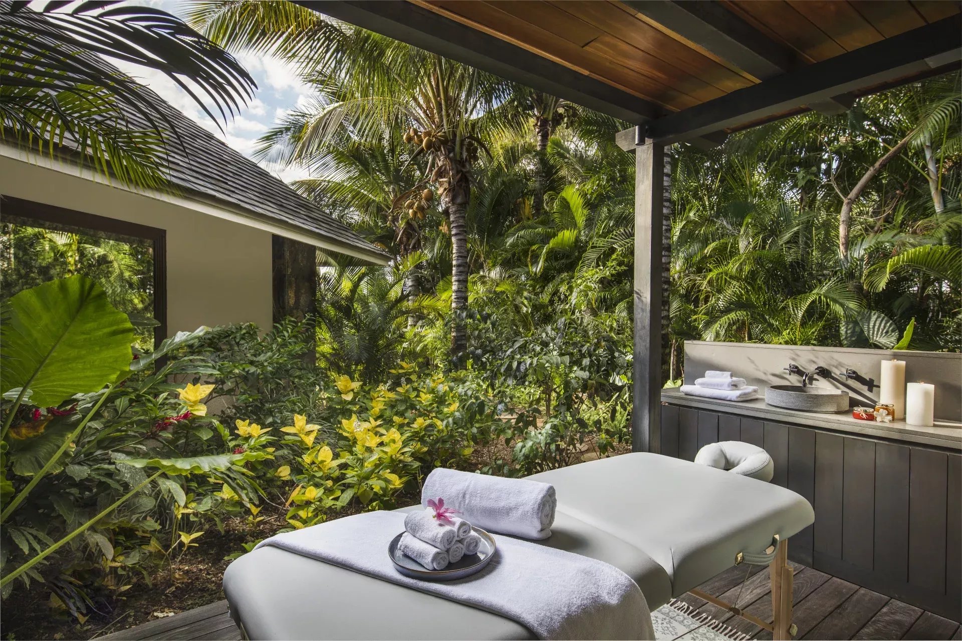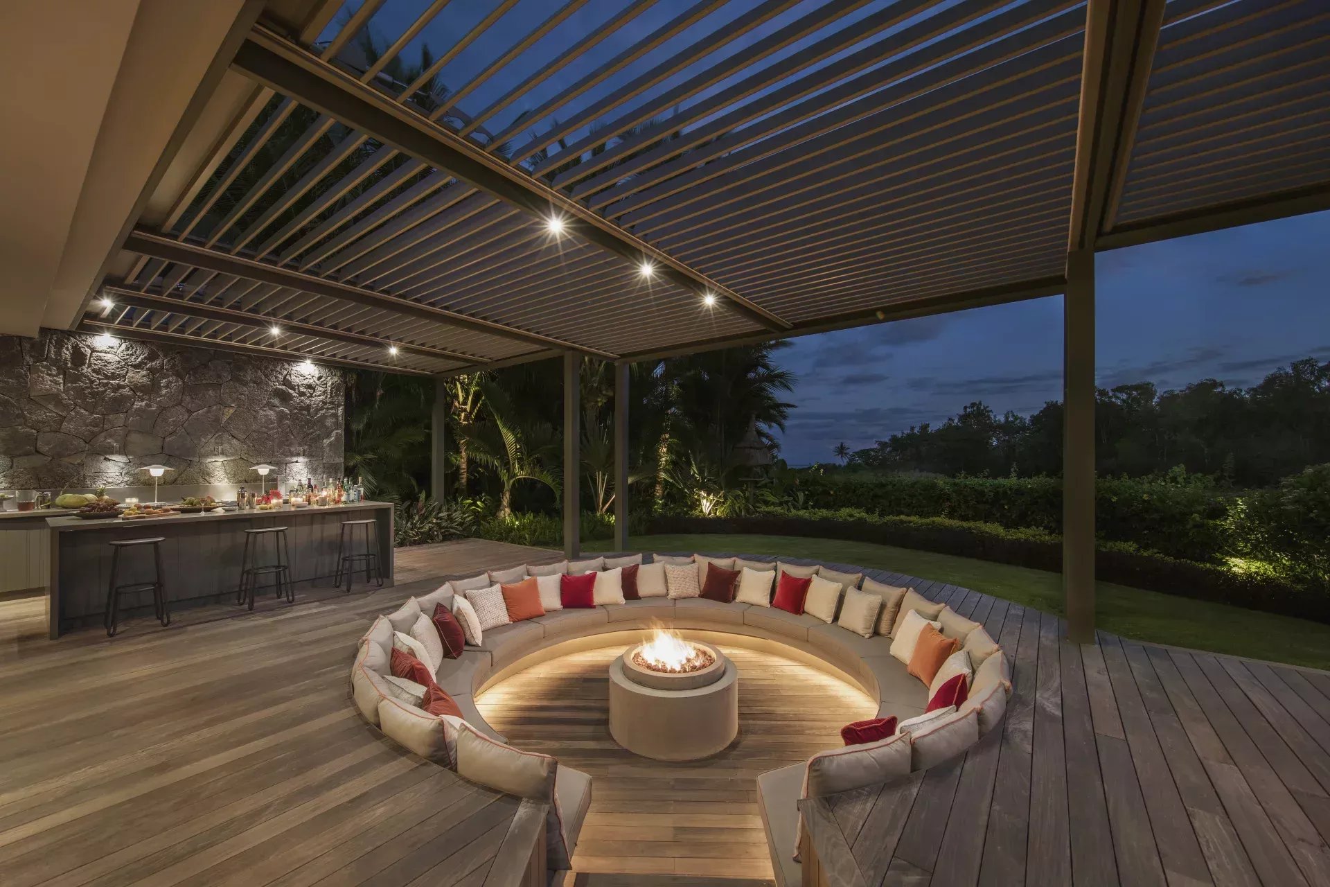Dans ce lieu confidentiel, la vie prend un autre rythme. Le matin, le soleil inonde la suite parentale face au lagon. À midi, les repas se prennent à l’ombre des frangipaniers, tandis que les après-midis s’étirent entre les longueurs dans la piscine et les pauses douces autour du brasero. Le soir, les lumières tamisées dévoilent une autre facette de la villa, intime et enveloppante.