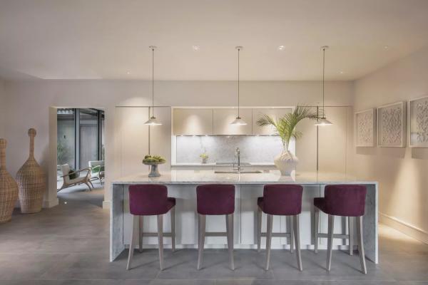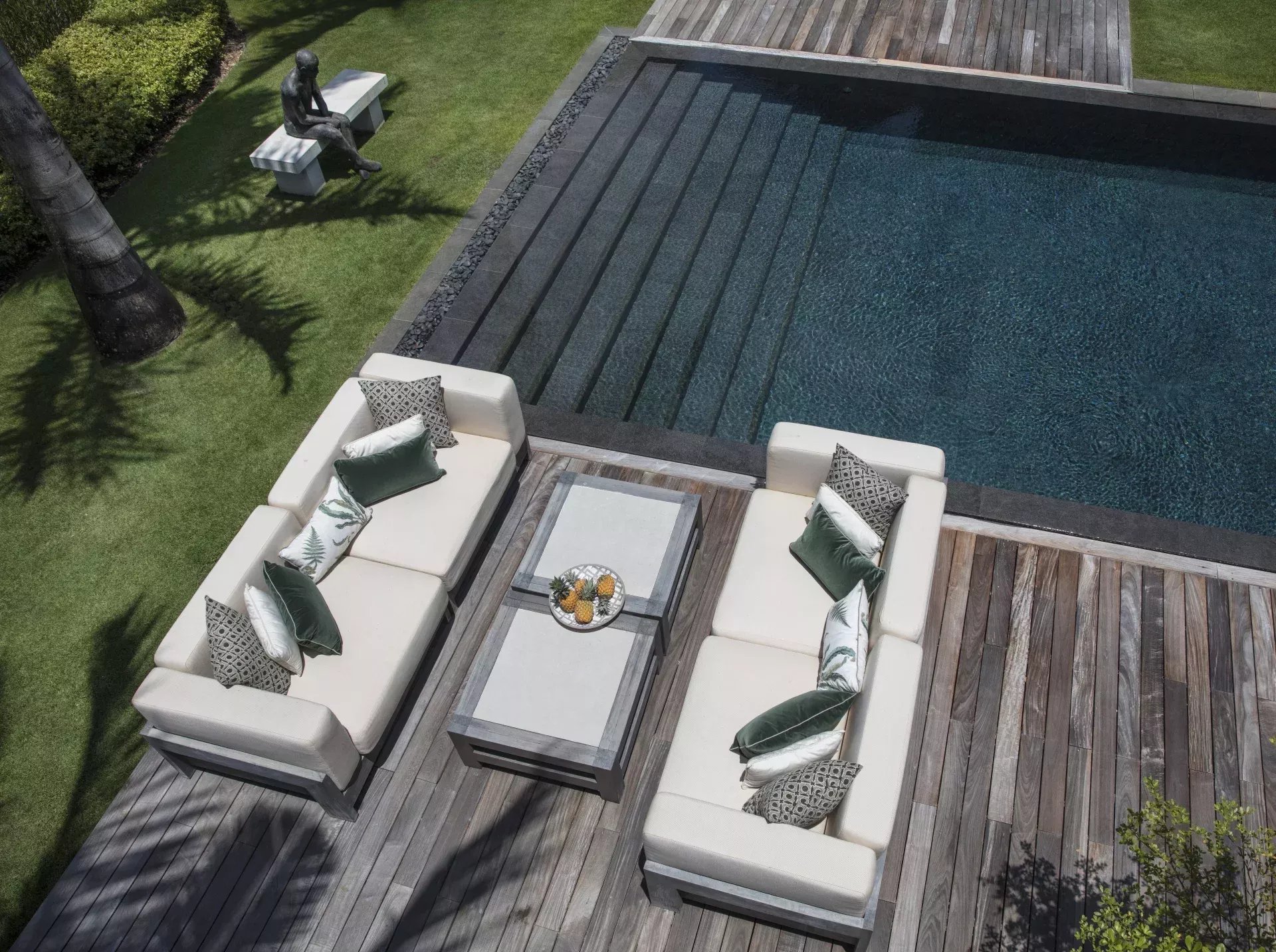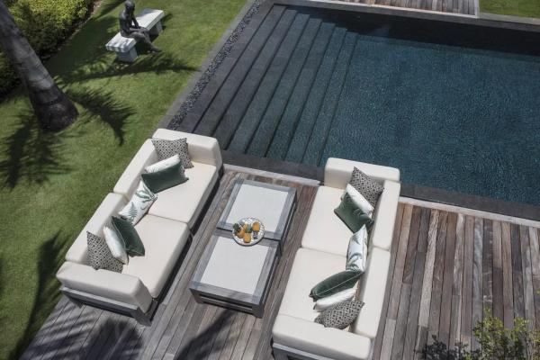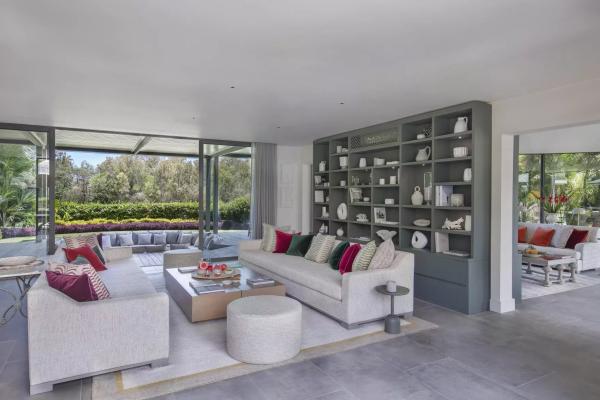 Chaque pièce est un dialogue entre architecture et paysage. Les finitions, choisies avec soin, révèlent un goût affirmé pour les matières nobles et l’artisanat local. À l’intérieur, le mobilier dessiné sur mesure épouse la fluidité des lignes, tout en préservant l’intimité de chacun. Les jeux d’ombres et de lumière, les ouvertures maîtrisées, l’ambiance sonore du jardin : tout ici est pensé pour inviter à la détente et à l’inspiration.