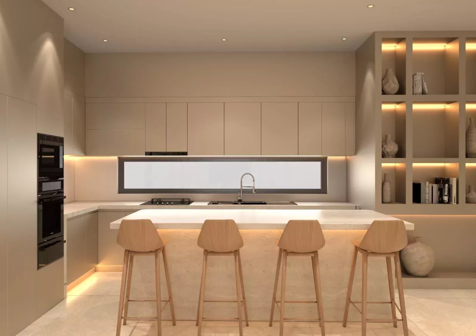 – Cuisine moderne : Cuisine équipée avec des matériaux de haute qualité et un îlot central, idéale pour cuisiner et recevoir.