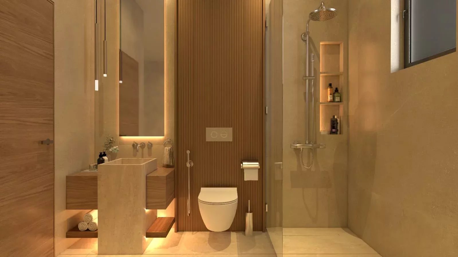 – Chambres : 3 chambres spacieuses, chacune avec salle de bain – attenante, assurant confort et intimité.