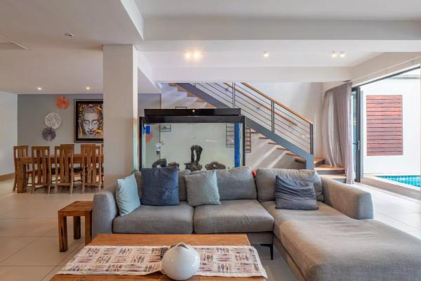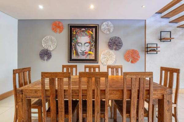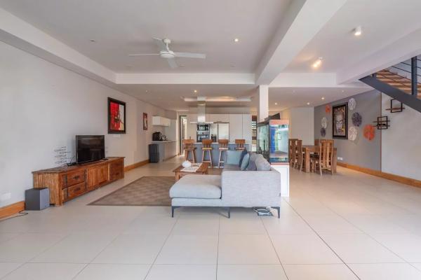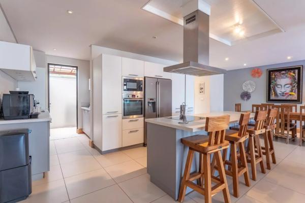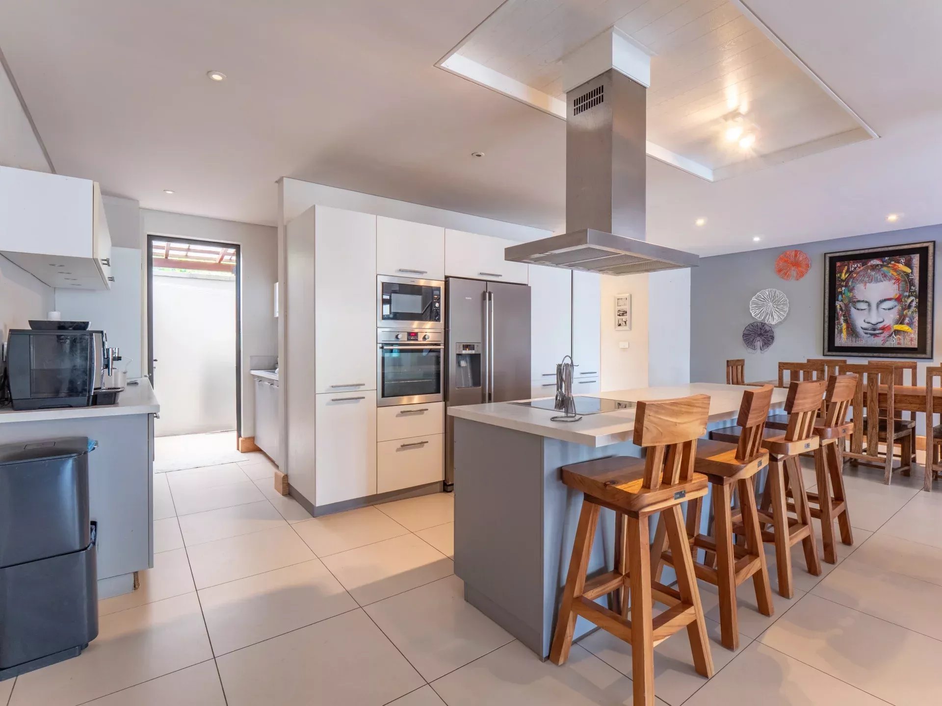 L’intérieur privilégie la lumière et l’ouverture avec un salon et une salle à manger largement tournés vers l’extérieur. Les volumes sont confortables, bien pensés et adaptés à une vie familiale comme à un usage plus exclusif. La cuisine ouverte s’intègre harmonieusement à l’espace de vie et participe à l’esprit convivial de l’ensemble.