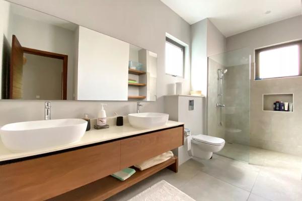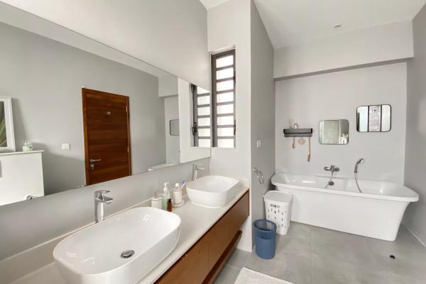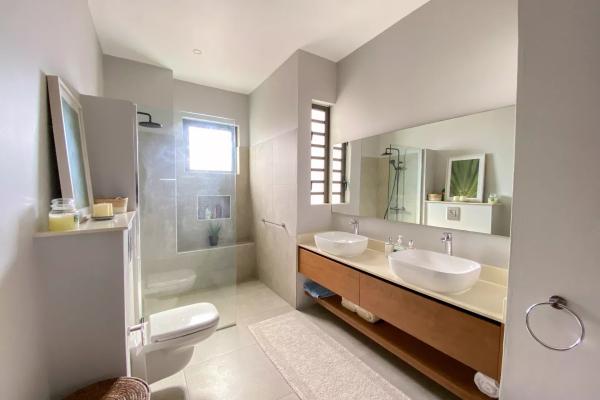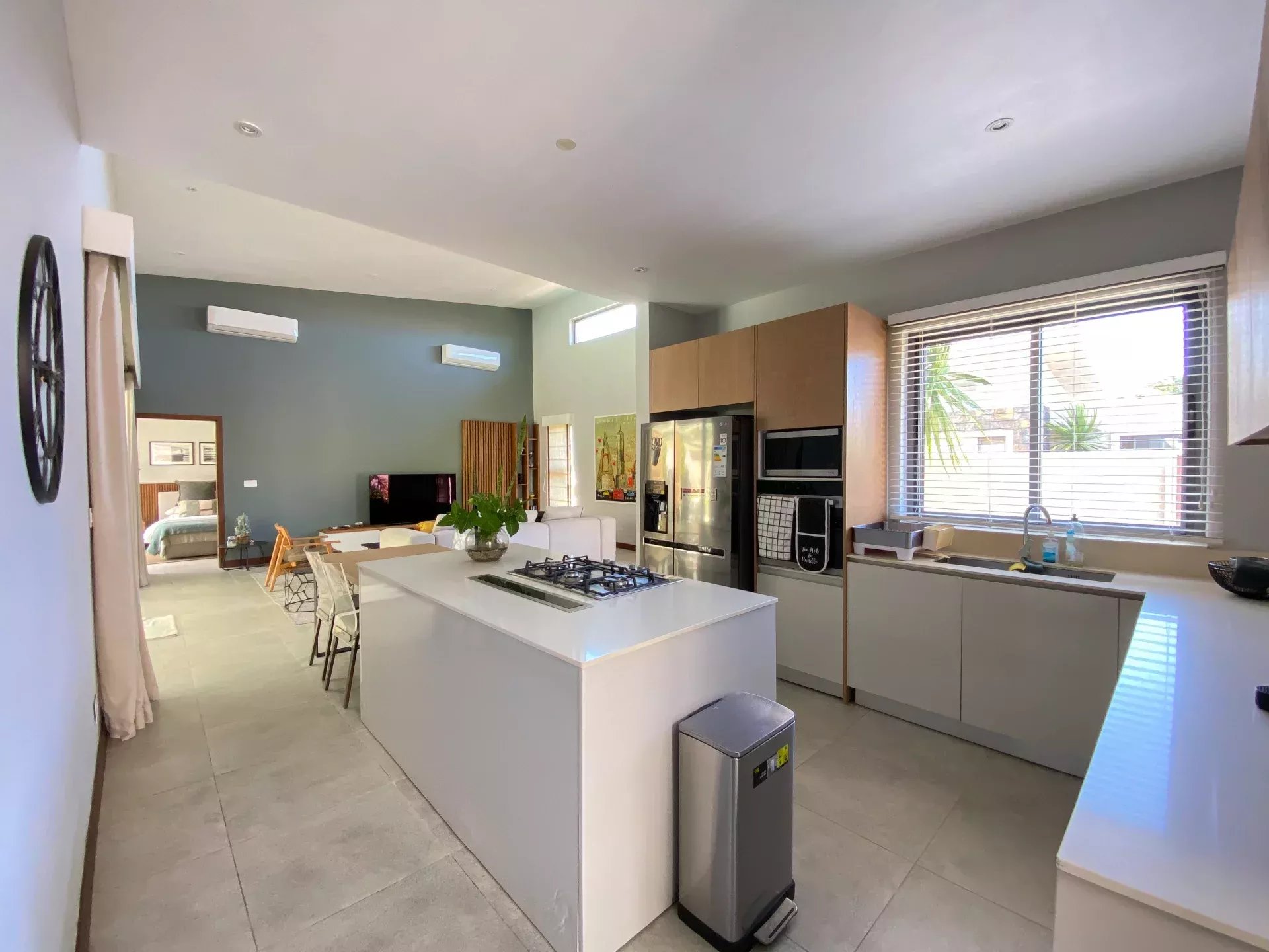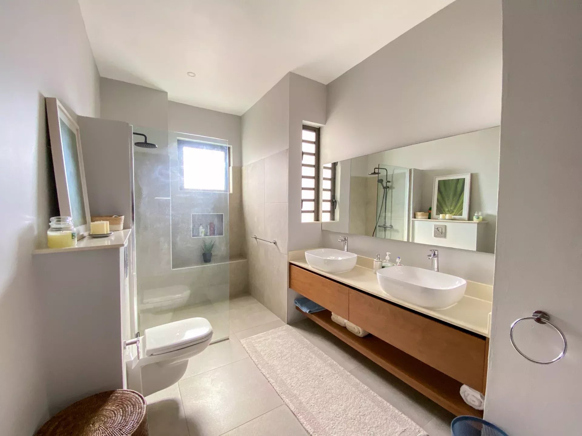 Villa d’exception à vendre à Pereybère offrant un cadre de vie unique en bord de mer. Cette élégante villa bénéficie d’une vue dégagée sur l’océan, avec une surface habitable de 211 m² et un terrain de 456 m², incluant une piscine privée et une vaste terrasse. Composée de quatre chambres spacieuses et de trois salles de bains modernes, elle dispose également d’un garage et d’un parking pour plusieurs véhicules. Idéale en résidence principale ou maison de vacances, cette propriété conjugue confort, sécurité et raffinement dans un environnement privilégié. La villa séduit par son architecture contemporaine, aux lignes épurées et aux volumes généreux qui s’ouvrent largement sur l’extérieur. Les grandes fenêtres coulissantes et les baies vitrées laissent pénétrer une lumière naturelle abondante, créant une atmosphère à la fois chaleureuse et apaisante. Le séjour se prolonge naturellement sur la terrasse ensoleillée, où la piscine invite à la détente dans un cadre intime et sécurisé. Chaque espace a été pensé pour offrir fluidité et convivialité, avec des matériaux nobles et des finitions soignées qui participent à l’élégance de la demeure. L’intérieur dévoile un agencement harmonieux, avec une cuisine équipée ouverte sur le salon, favorisant les moments de partage. Les quatre chambres offrent un confort optimal, bénéficiant toutes de rangements intégrés et d’une ventilation climatisée. Les trois salles de bains, modernes et raffinées, apportent une touche de bien-être supplémentaire. Le jardin paysager, clôturé et éclairé, assure une intimité totale, tandis que les équipements high-tech — groupe électrogène, adoucisseur d’eau, fibre optique, portail électrique — garantissent un mode de vie alliant sérénité et modernité. Un gardien veille à la sécurité de la propriété. Caractéristiques • Terrain : 456 m² • Surface habitable : 211 m² • Vue : Océan et environnement naturel • Nombre de chambres : 4 • Espaces de vie : Séjour et salle à manger ouverts • Cuisine : Équipée et ouverte • Piscine : Privée • Jardin : Clôturé et paysager • Terrasses : Grande terrasse attenante à la piscine • Équipements complémentaires : Air conditionné, groupe électrogène, adoucisseur d’eau, fibre optique, portail électrique, gardien, éclairage extérieur, fenêtres coulissantes, garage et parking Située dans l’un des quartiers les plus prisés de Pereybère, cette villa rare conjugue emplacement d’exception et cadre de vie idyllique. À proximité des plages, commerces et commodités, elle représente un investissement patrimonial précieux, alliant luxe, confort et sérénité. L’équilibre parfait entre vie intérieure et extérieure invite à un art de vivre raffiné, véritable signature de la région. Un bien d’exception à ne pas manquer. Contactez-nous pour avoir plus de renseignements ou organiser une visite.