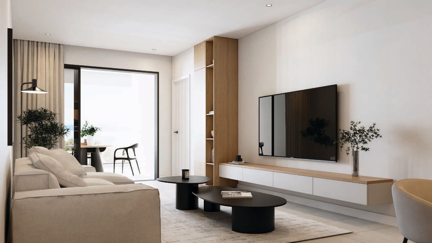 Le séjour s’ouvre sur un balcon agréable permettant de profiter du climat de la côte Ouest tout au long de l’année. La cuisine, conçue selon des standards contemporains, offre un espace fonctionnel et convivial. Les deux chambres sont bien agencées, dont une chambre principale avec salle de bains attenante, garantissant confort et intimité.