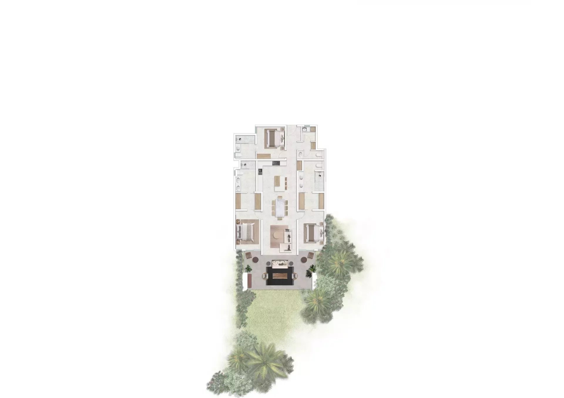 Chaque appartement est minutieusement conçu avec des matériaux haut de gamme et un design contemporain, comprenant trois chambres luxueuses avec salles de bains attenantes. Les généreux espaces de vie s’ouvrent sur de vastes terrasses, parfaites pour recevoir vos amis ou savourer le climat tropical. Après une journée bien remplie, détendez-vous dans votre espace climatisé ou promenez-vous dans les jardins tropicaux, véritables havres de paix.