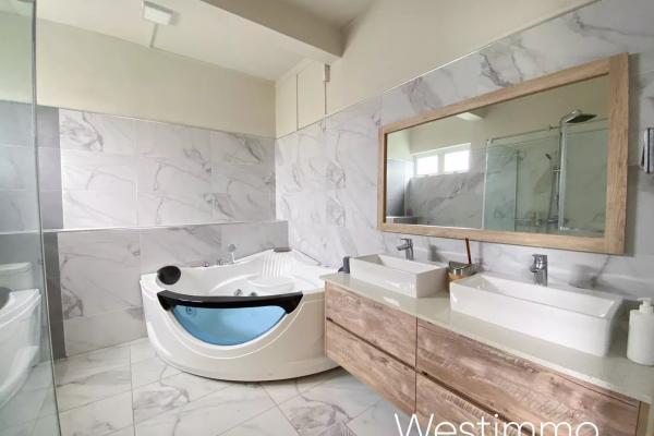 Nous vous proposons la location long terme cette sublime villa de 4 chambres à coucher avec salle de bains privative. Décoré avec rafinement et goût cette magnifique villa moderne possède tout les atouts pour vous offrir tout le confort d’une vie de rêve en toute quiétude. Située à quelques pas du lagon et de ses eaux cristallines, cette villa est idéale pour les personnes souhaitant profiter du calme que peut procurer le bord de mer.