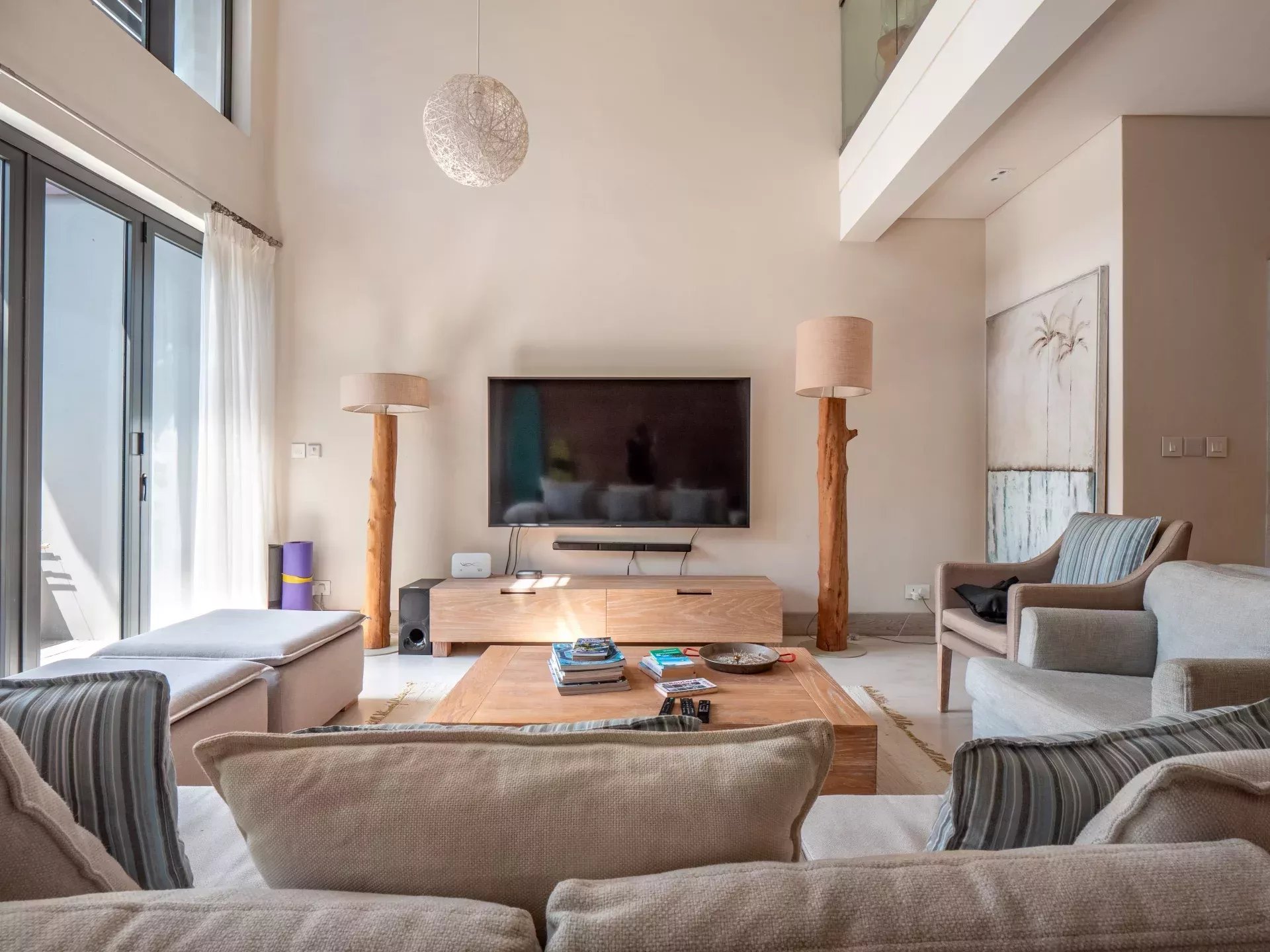 Ce duplex séduit d’abord par la qualité de ses volumes et l’équilibre de sa distribution intérieure. Le salon principal, lumineux et ouvert, a été conçu pour offrir une atmosphère conviviale et confortable, avec une belle relation visuelle vers l’environnement de la marina. Les espaces sont pensés pour une occupation agréable au quotidien, dans un esprit à la fois fonctionnel et raffiné. Les finitions participent à cette impression d’ensemble cohérente, sobre et soignée, adaptée à une clientèle sensible au confort durable plutôt qu’à l’effet démonstratif.