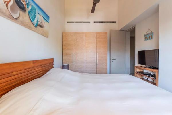 Le duplex se développe avec cohérence et simplicité. Au rez-de-chaussée, le salon, la salle à manger et la cuisine équipée prolongent naturellement les espaces intérieurs vers l’extérieur. La terrasse privative avec piscine devient un véritable prolongement de la maison, favorisant une circulation agréable entre les volumes de réception et les espaces de détente. Un espace de rangement ainsi qu’un toilette invités viennent compléter ce niveau, renforçant le confort d’usage au quotidien.