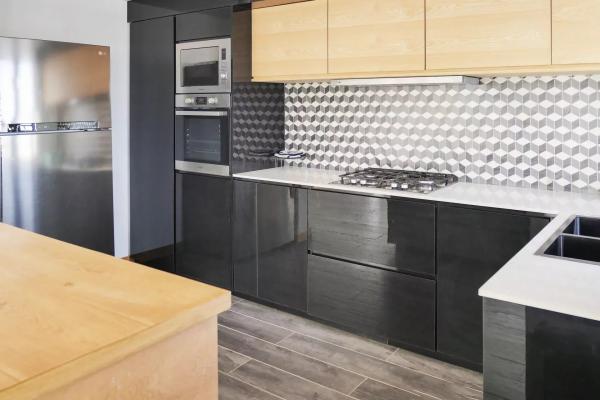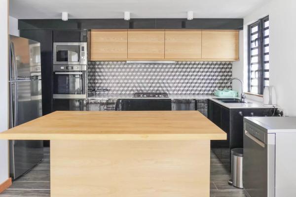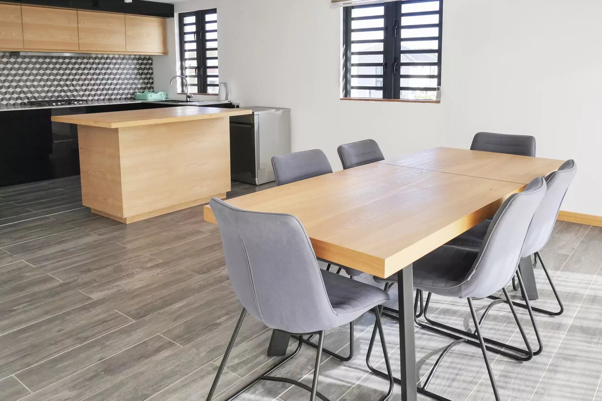 Cuisine moderne et entièrement équipée, intégrée à l’espace salle à manger