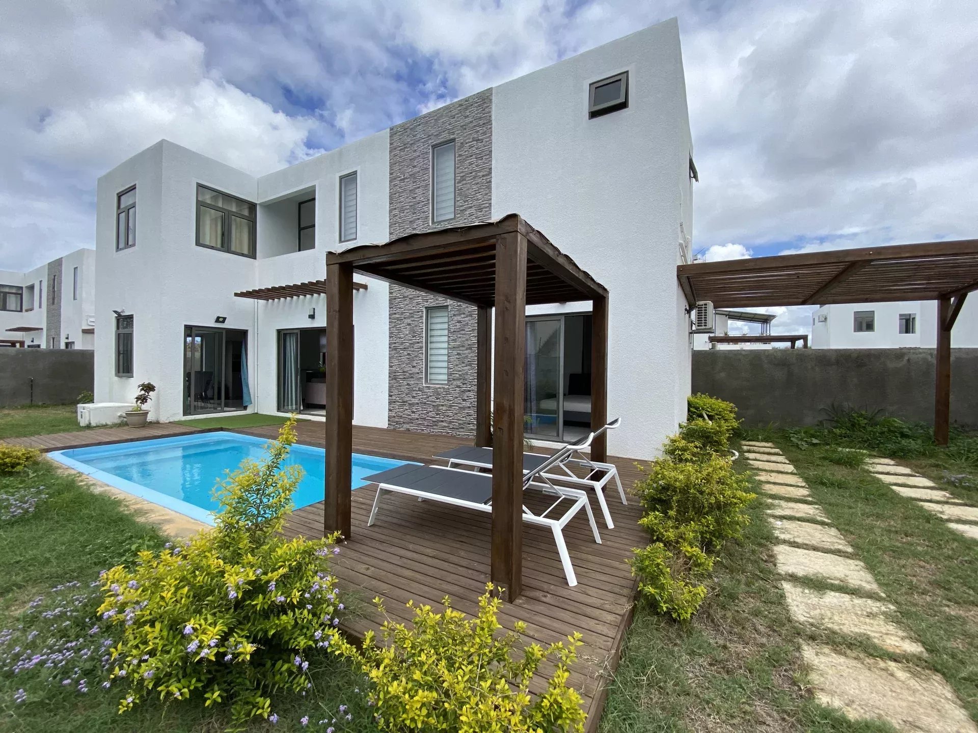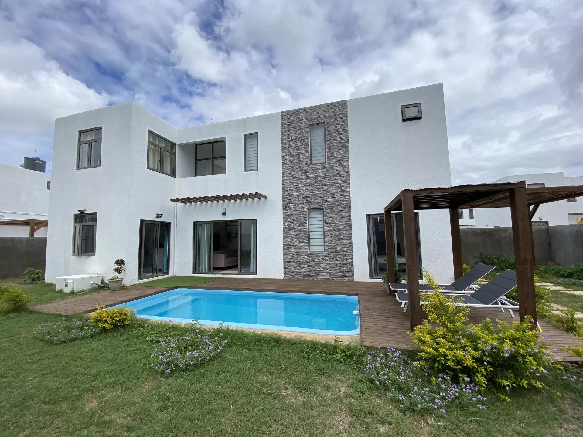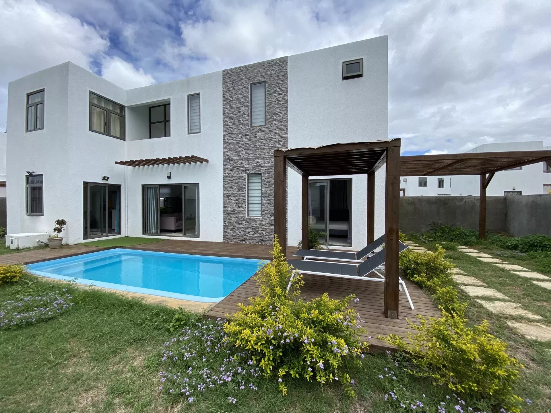 › Villa › GRAND BAIE – Location long terme Villa avec terrasse, jardin et piscine.