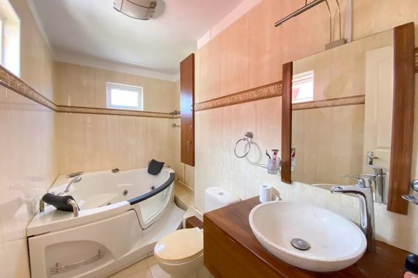 Composition : Cuisine équipée, salon spacieux avec coin repas, 3 chambres à coucher dont 1 en suite avec jacuzzi, 3 salles de bains, buanderie, balcon et terrasse aménagée pour des repas en extérieur.