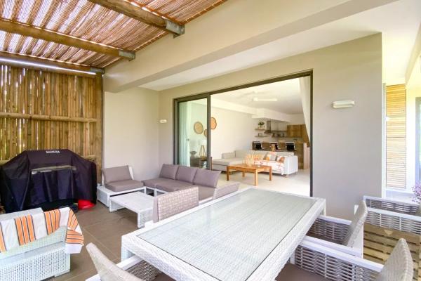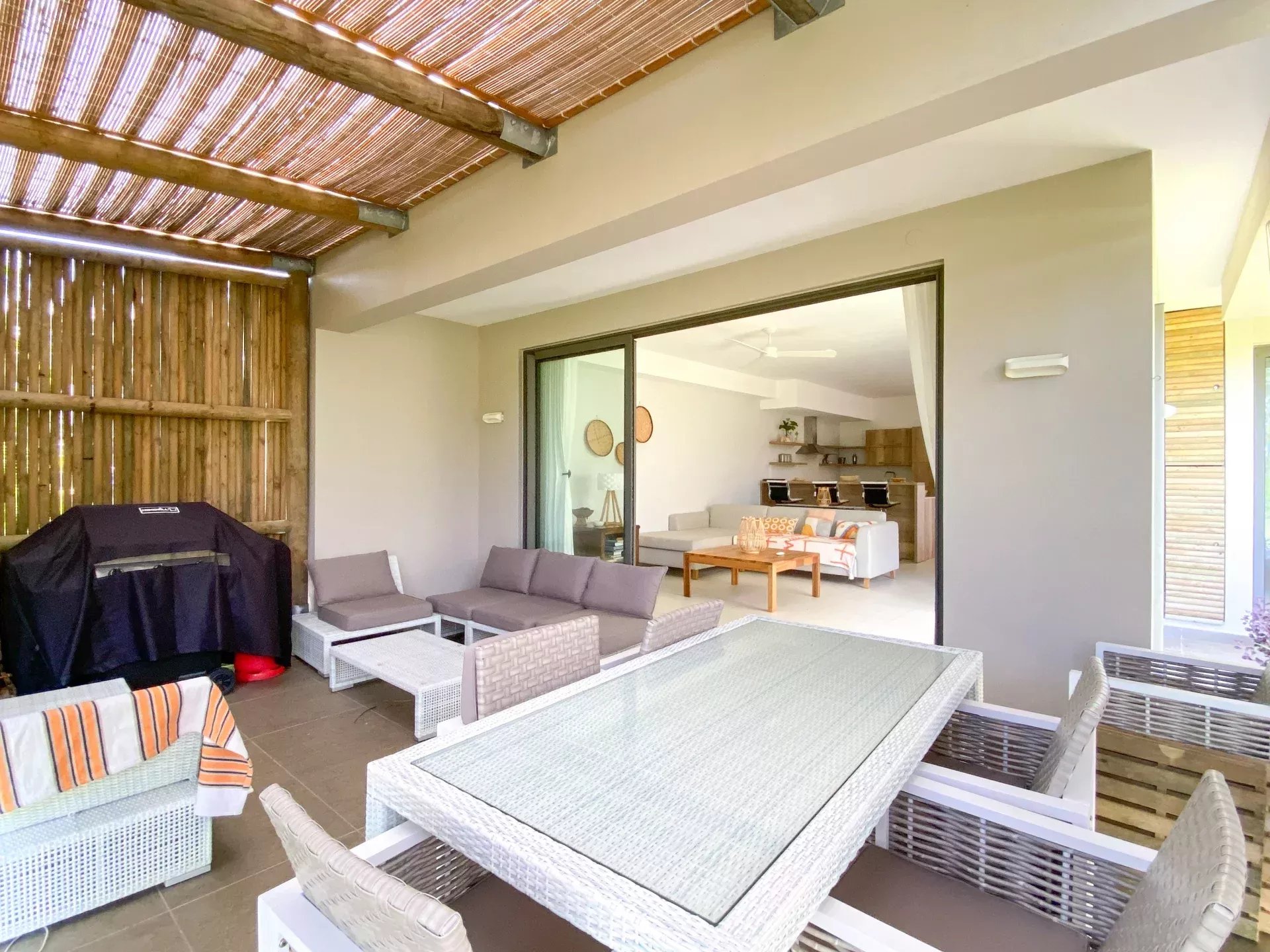 – Terrasse aménagée avec coin repas et salon extérieur.