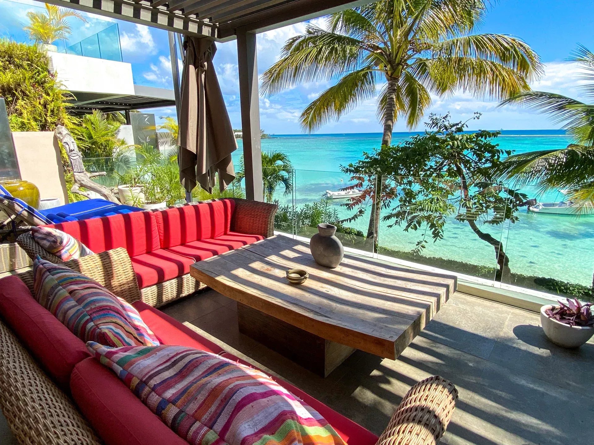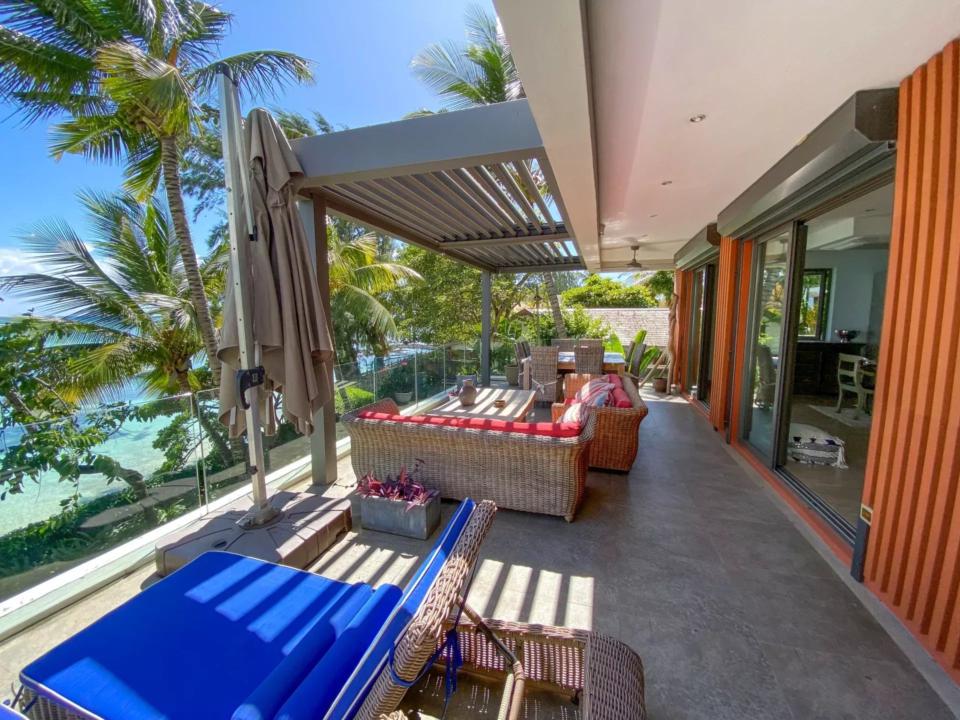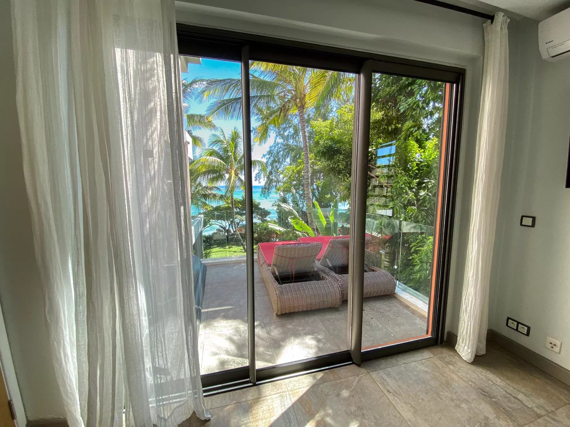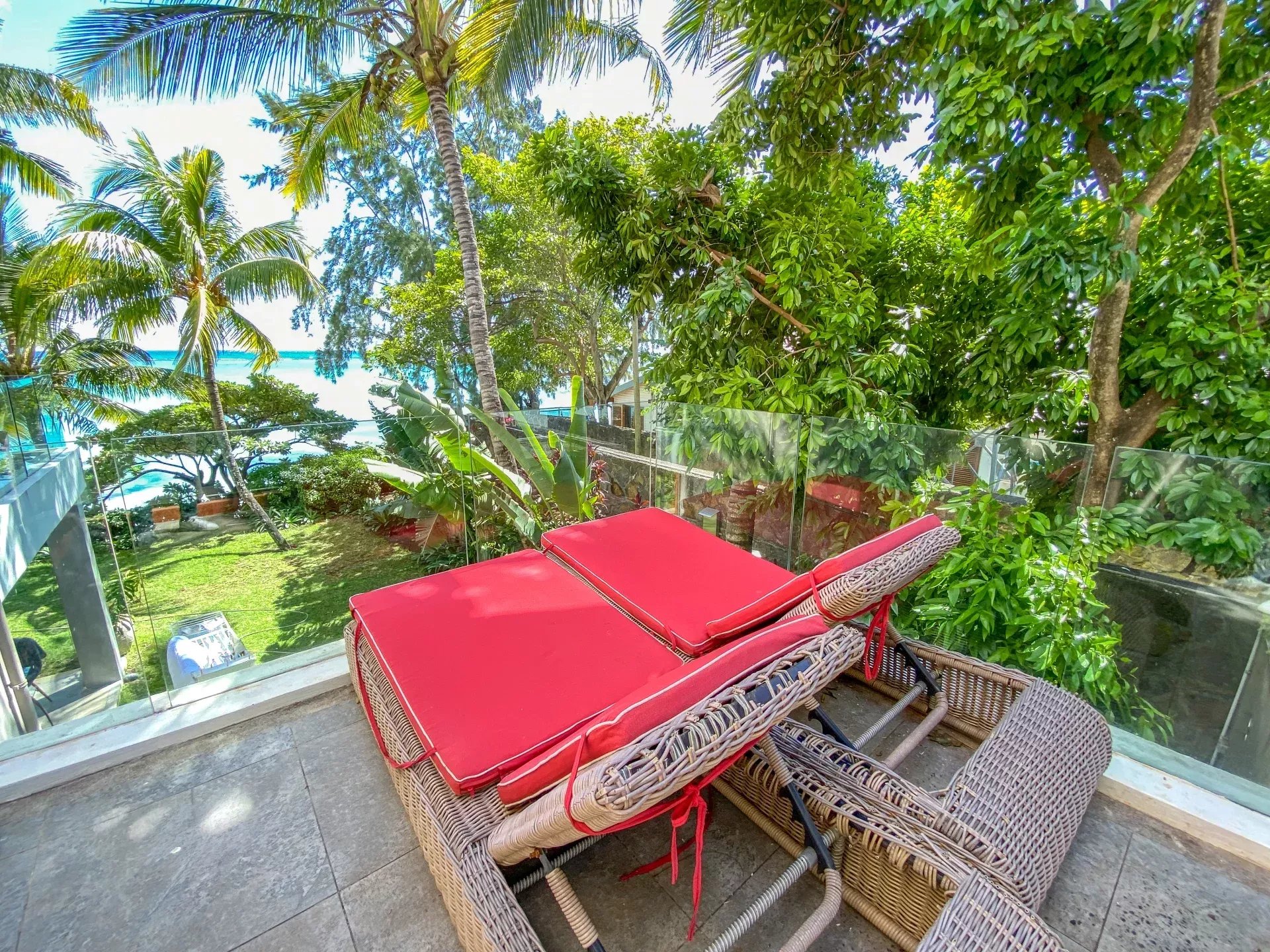 – 3 Chambres à coucher dont une en suite, 2 avec accès terrasse et vue sur le lagon.
