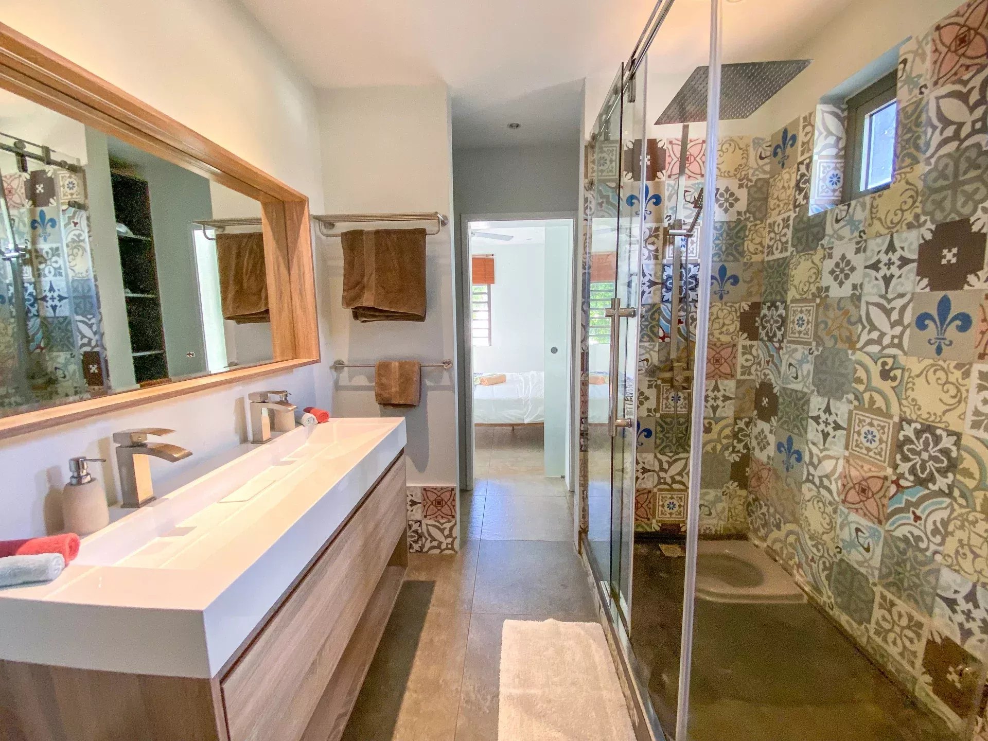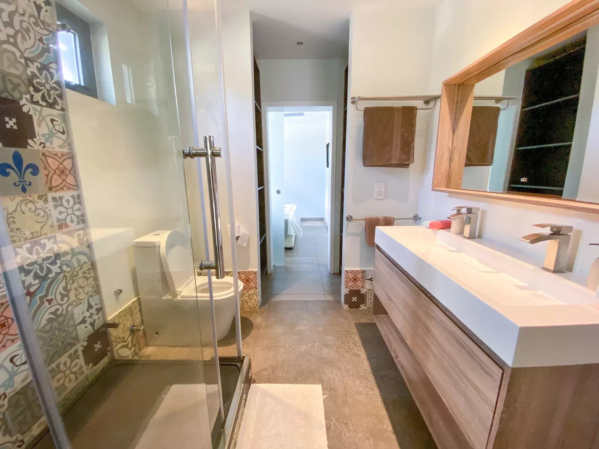 – 2 Salles de bains (une en suite et une communicante avec les deux autres chambres).