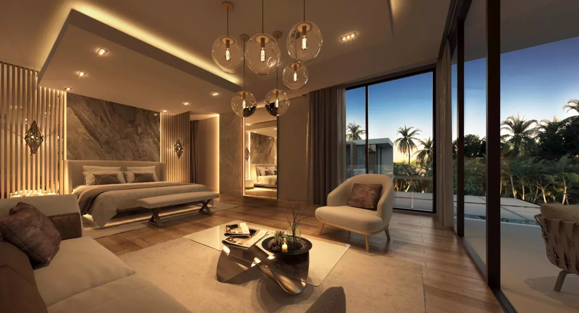 Ces espaces résidentiels d’exception comprennent également des installations de divertissement de premier ordre, notamment un cinéma privé, où vous pourrez vous détendre et profiter de vos films préférés dans le confort absolu. Les salons lumineux vous invitent à la détente et à la convivialité, tandis que les terrasses et les balcons offrent une vue à couper le souffle sur l’horizon magnifique de l’île.