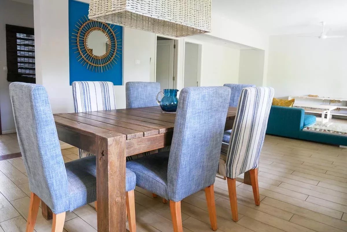 À l’extérieur, la grande terrasse et le jardin prolongent naturellement les espaces de vie et donnent à l’appartement une dimension particulièrement agréable. Cet ensemble permet de profiter pleinement de l’environnement tropical dans une atmosphère détendue et résidentielle. La piscine commune complète cette qualité de vie en apportant un espace de détente supplémentaire, particulièrement apprécié au quotidien. La situation dans Tamarin constitue enfin un atout majeur, avec un accès rapide aux commodités essentielles et à l’animation du secteur, tout en conservant un cadre de vie confortable et recherché.