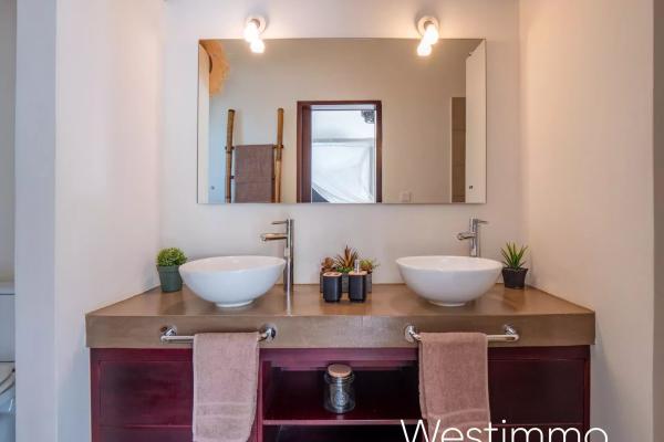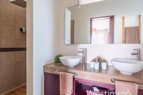 La partie nuit a été conçue pour répondre à différents usages. La villa propose 5 chambres, dont 4 en suite, avec la possibilité d’aménager l’ensemble en 4 chambres plus un bureau selon les besoins. Cette flexibilité constitue un véritable atout pour une vie de famille confortable, tout en ouvrant la voie à une activité de chambres d’hôtes haut de gamme. Chaque espace a été pensé pour préserver l’indépendance et le confort des occupants, dans un esprit résidentiel élégant et accueillant.