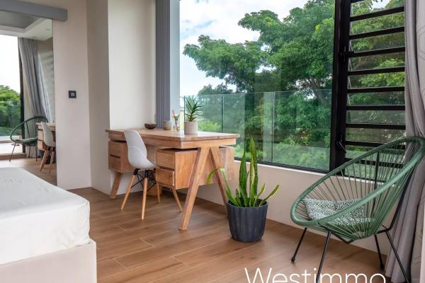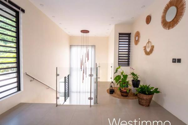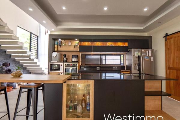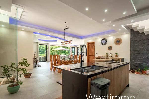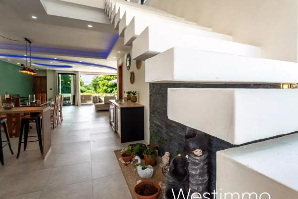 Dès votre arrivée, le rez-de-chaussée vous séduira par son spacieux salon, sa salle à manger conviviale et son coin télé pour des moments de détente. La cuisine ouverte entièrement équipée, avec son arrière-cuisine et sa buanderie, ravira les passionnés de cuisine. Une varangue avec coin repas et espace détente vous invitera à profiter des douces brises tropicales tout en savourant vos repas en plein air. La chambre principale, avec son dressing design et sa salle de bains privative, offre un véritable espace de luxe. De plus, un garage spacieux est à votre disposition pour stationner vos véhicules en toute sécurité. Tout au long de l’année vous allez profiter d’un jardin luxuriant avec une vue sur la verdure du chassée et la belle piscine en pierre de lave.