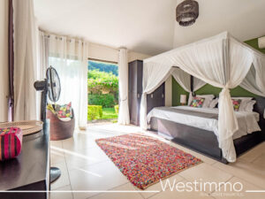 240 m² bungalow + terrace, 5 bedrooms including 4 en suite, counter-current pool, Rempart mountain view. Potential for chambres d'hôtes, estimated yield 3.9%.