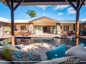 Discover this superb modern villa in Tamarin, offering 5 bedrooms and a pool. Enjoy a spacious, light-filled living space with a breathtaking view of the Turret and the Bay River.